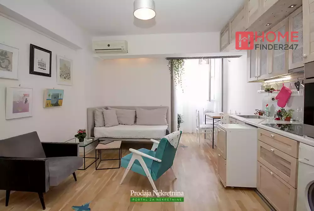 Die 38m² große Wohnung im Stadtzentrum bietet ein modernes Design und eine optimale Raumgestaltung.