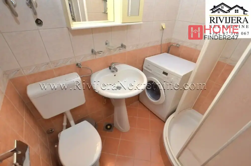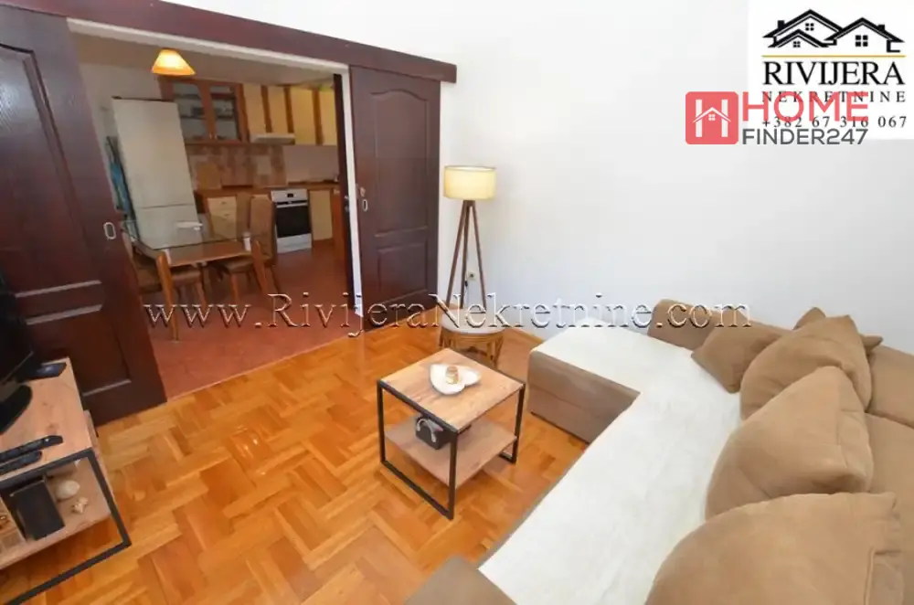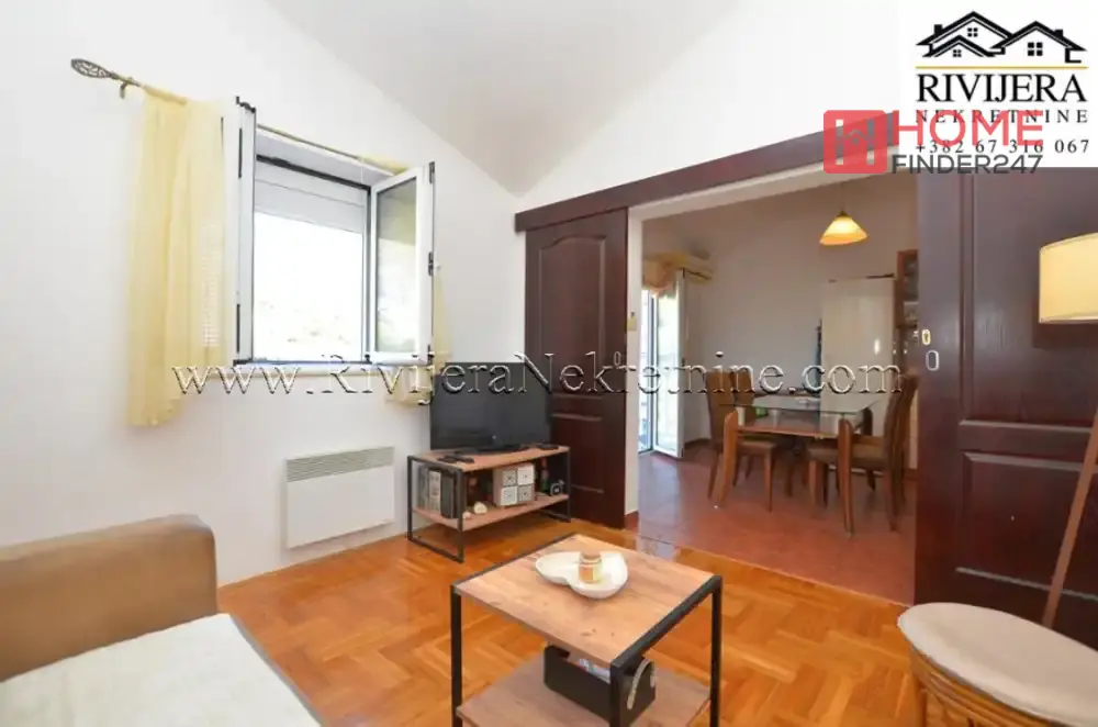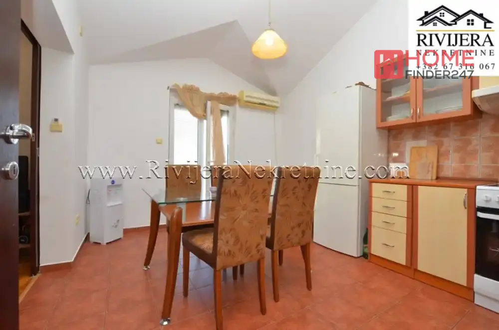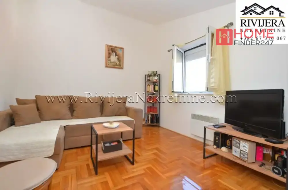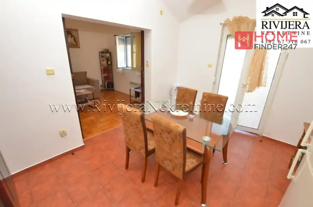 Entdecken Sie diese charmante Zwei-Zimmer-Wohnung im Herzen von Bijela, Herceg Novi. Die Wohnung erstreckt sich über 56 m² (registriert mit 50 m²) und bietet einen praktischen Grundriss mit Flur, Badezimmer, Küche mit Essbereich, Wohnzimmer, Balkon und zwei Abstellräumen.