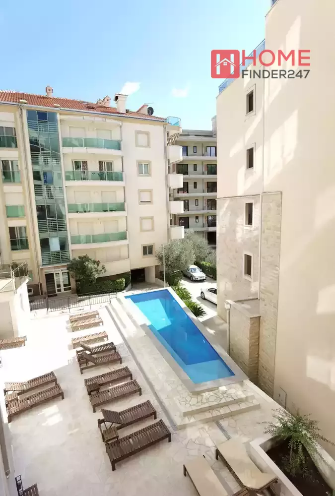 It is located in a building with a swimming pool intended for guests and tenants of the building.