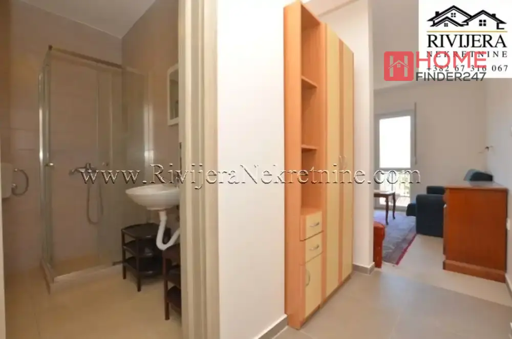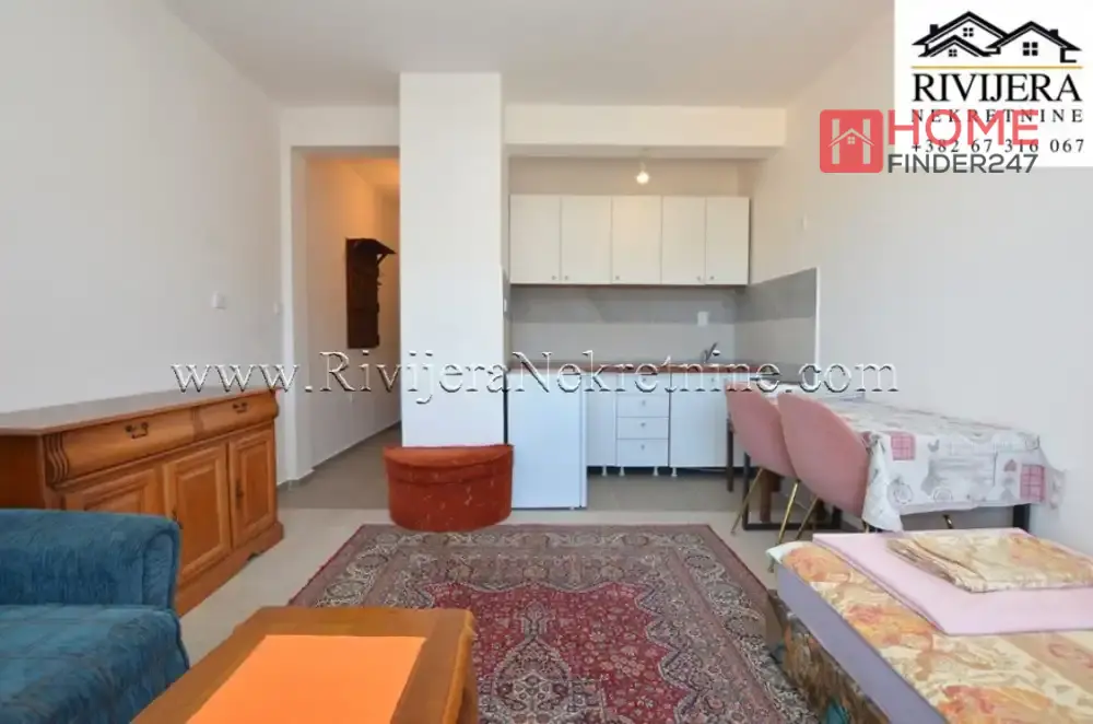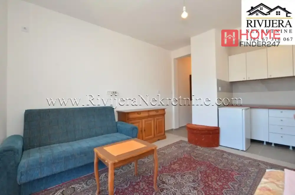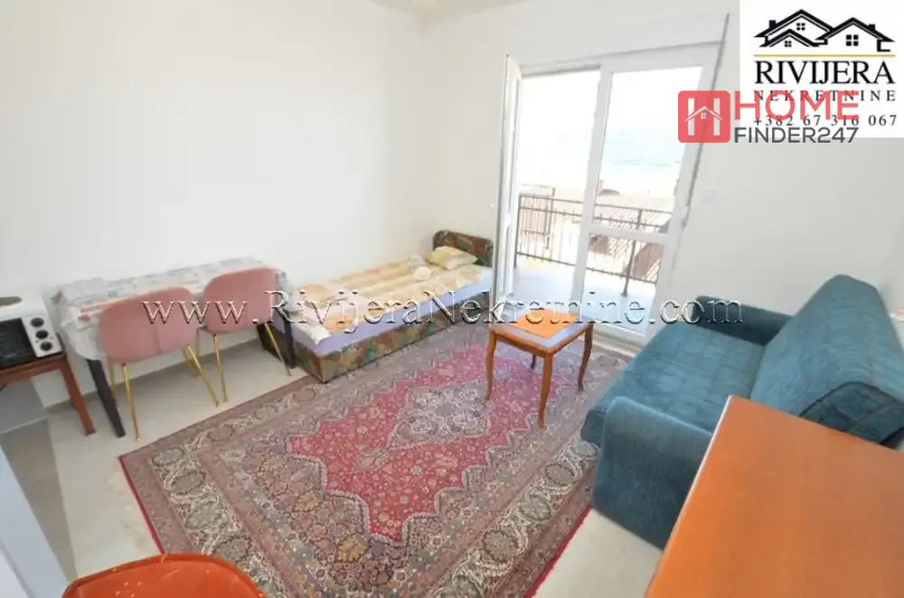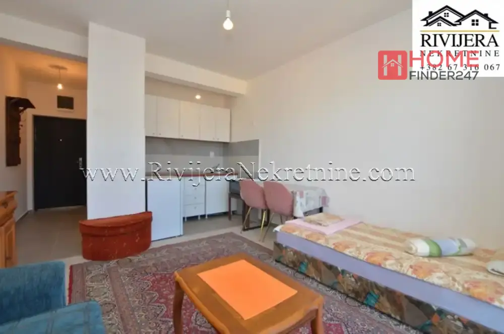 Layout: entrance hall, living room with kitchen, terrace, and bathroom. Fully equipped with a parking space. 300 m from the sea, near the Marina "Portonovi". Price: €82,000