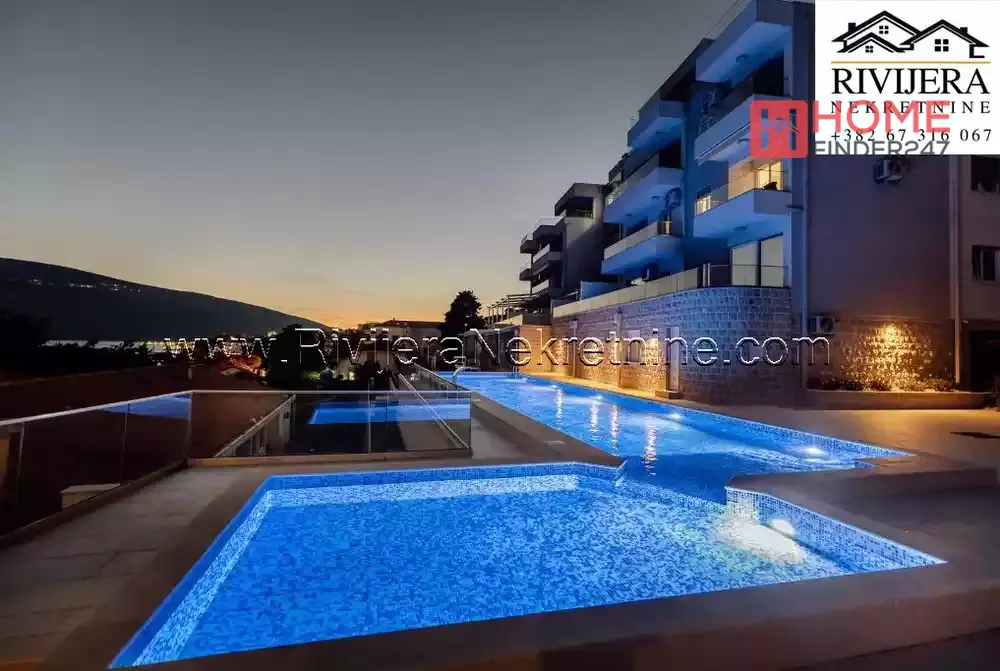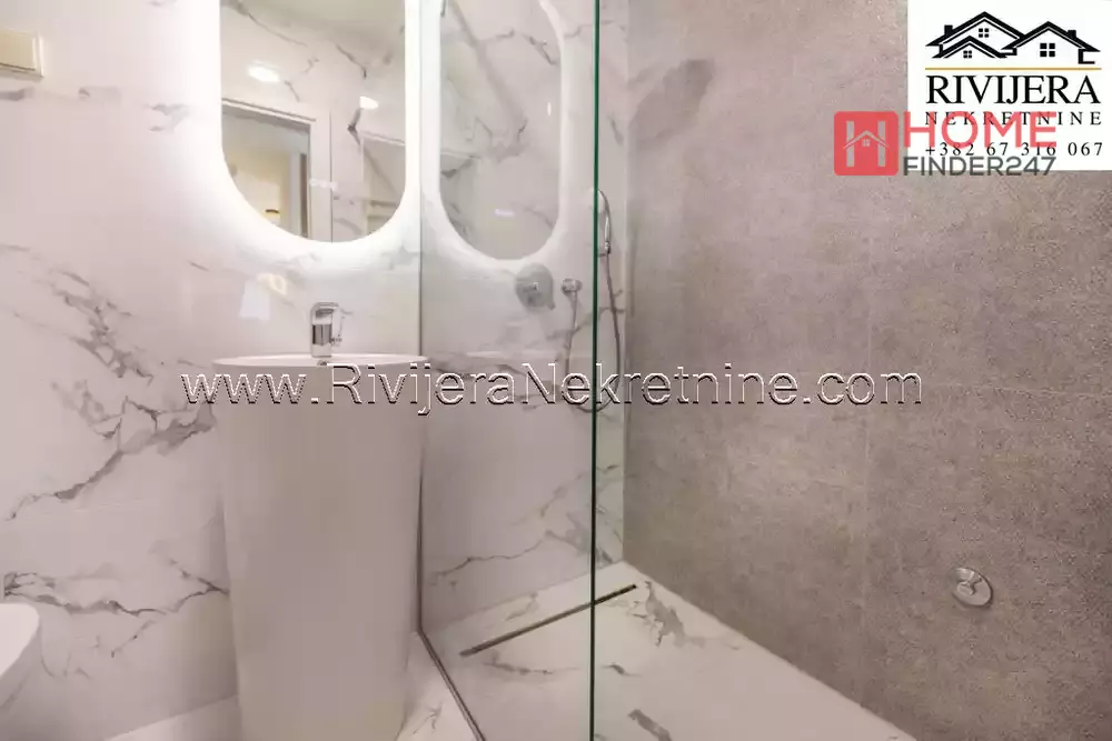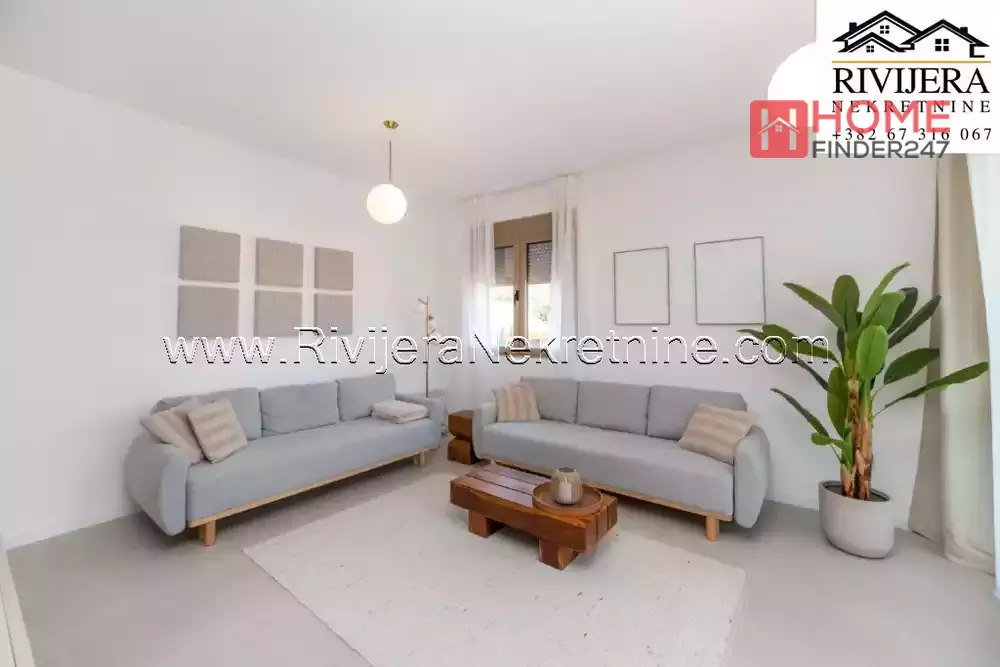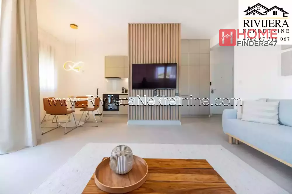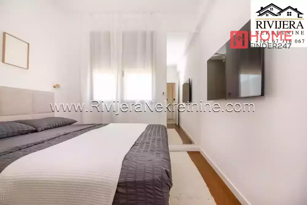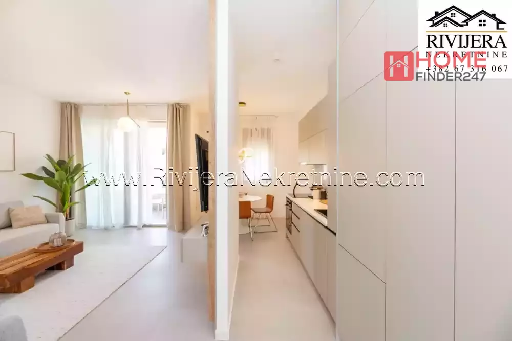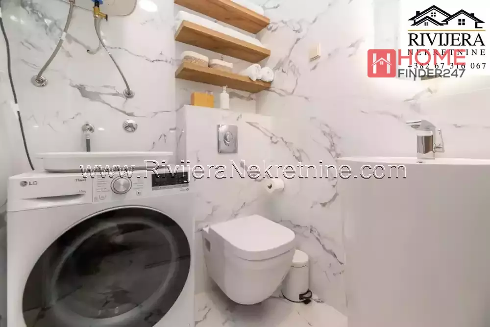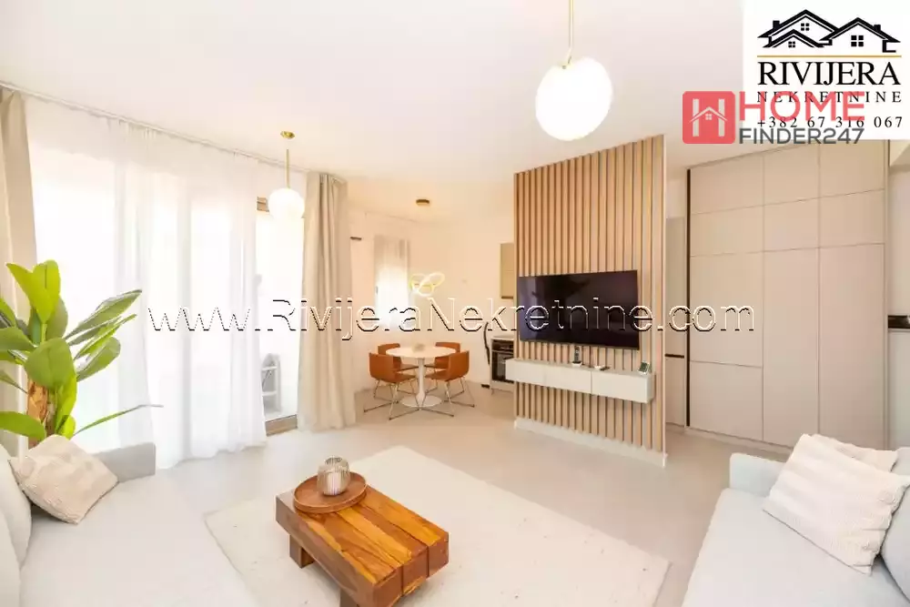 Luxuswohnung in Herceg Novi zum Verkauf. Die Wohnung hat eine Fläche von 51 m2. Das Layout umfasst ein Wohnzimmer mit Küche und Essbereich, ein Schlafzimmer, ein Badezimmer und eine Terrasse. Nur 100 m vom Meer entfernt. Preis: 220.000 Euro.