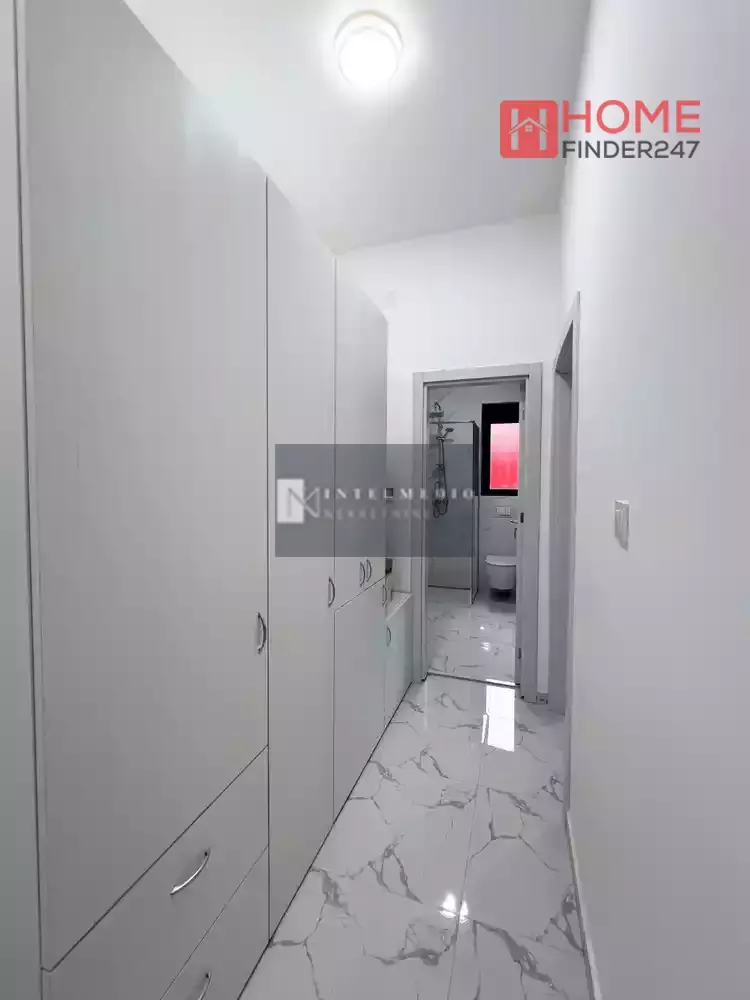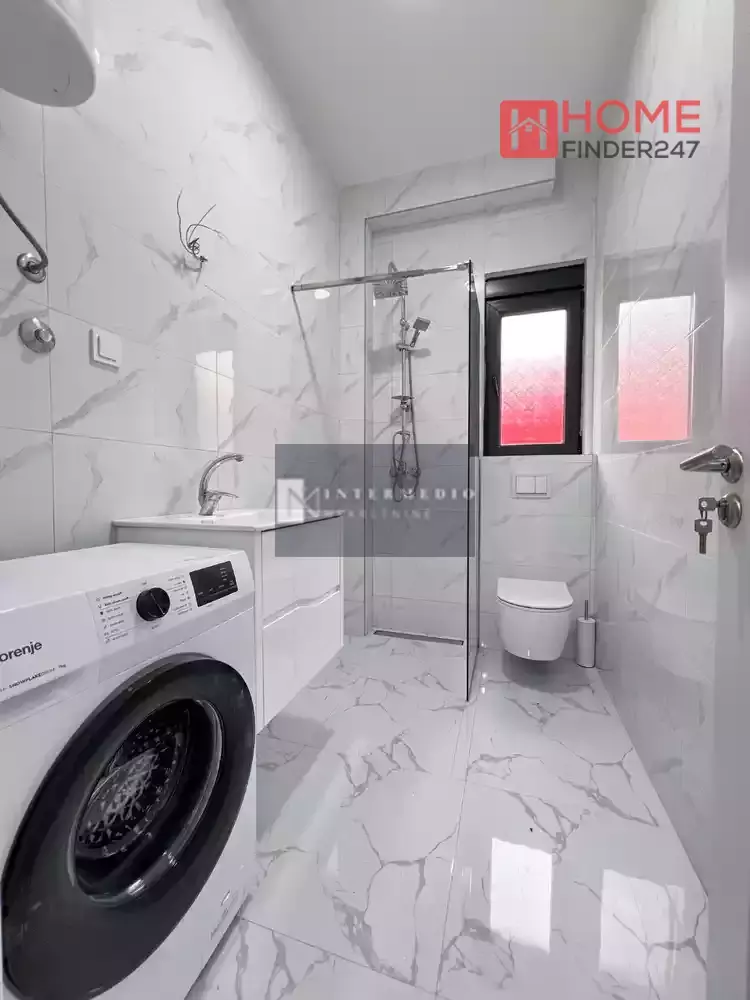 Die Wohnung befindet sich in einem neugebauten Gebäude und bietet alle Einbaumöbel.