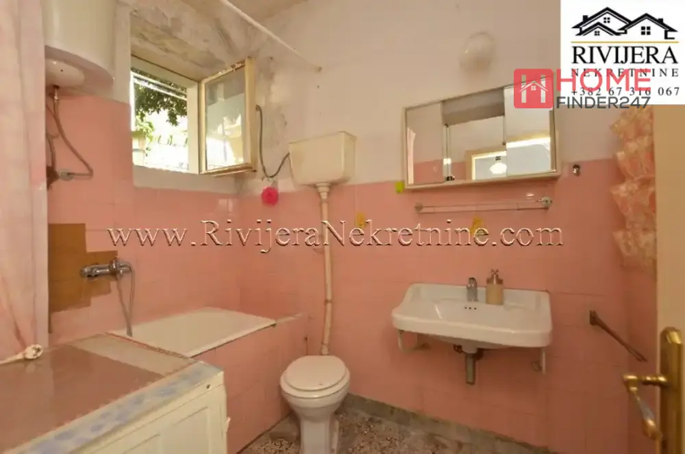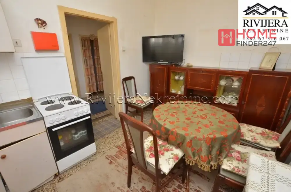 Versteigertes Apartment im Zentrum von Herceg Novi. Die Wohnung erstreckt sich über 53 m² und verfügt über einen Eingangsbereich, ein Badezimmer, einen Abstellraum, ein Wohnzimmer, ein Schlafzimmer, eine Terrasse, eine Küche und ein Esszimmer. Die Wohnung ist südlich ausgerichtet und sonnig, nur eine Minute vom Meer entfernt. Vor der Wohnung befindet sich ein kleiner Hof zur Nutzung. Die Wohnung benötigt eine vollständige Renovierung. Preis: 208.000 Euro