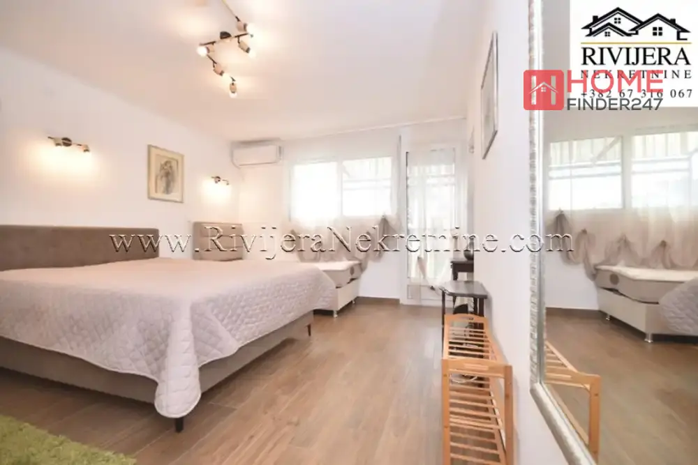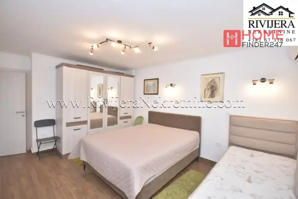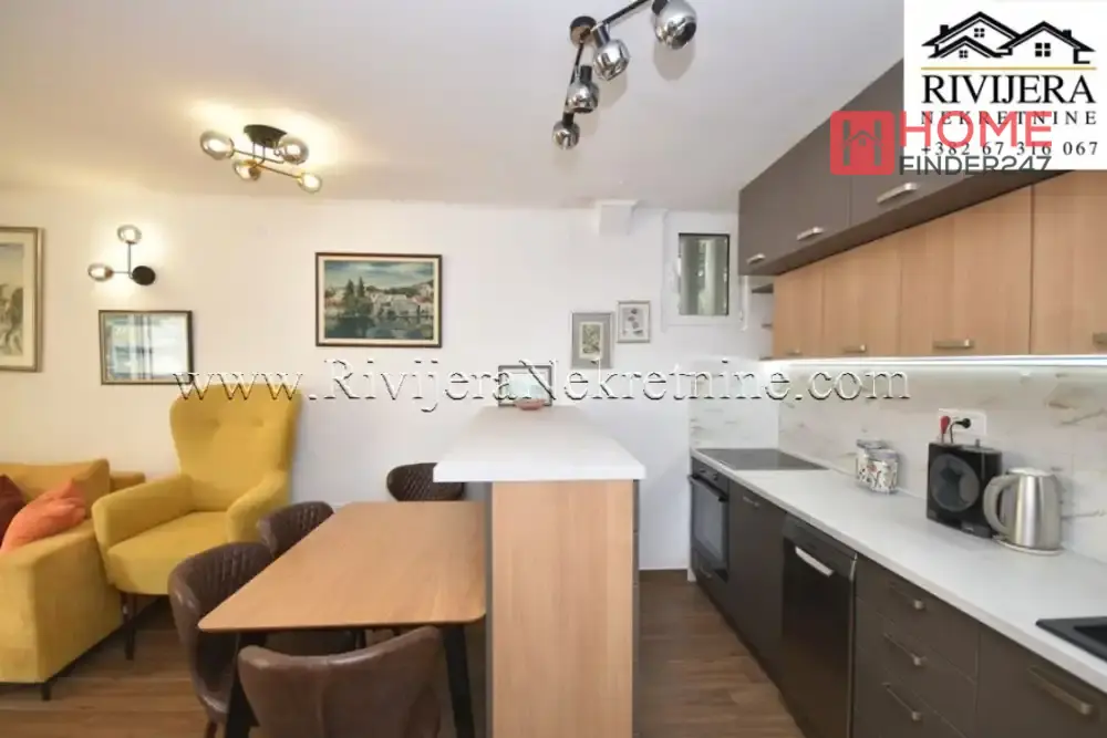 Raumaufteilung: Flur, Badezimmer, Küche mit Wohnzimmer und Zugang zur Terrasse, großes Schlafzimmer. Perfekt für Wohnen, Investition oder Vermietung. Die lebendige Stadt Herceg Novi liegt an der Adriaküste in Montenegro und bietet eine wunderschöne Umgebung.