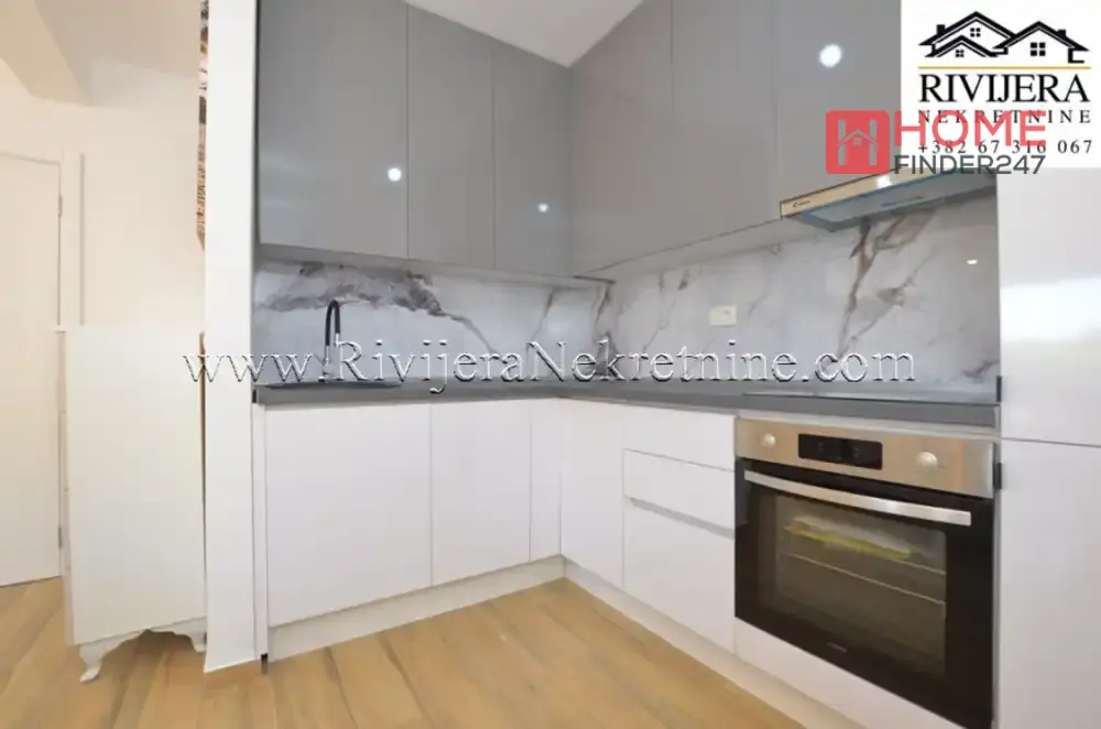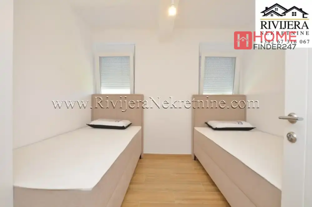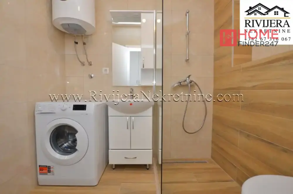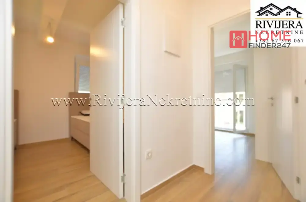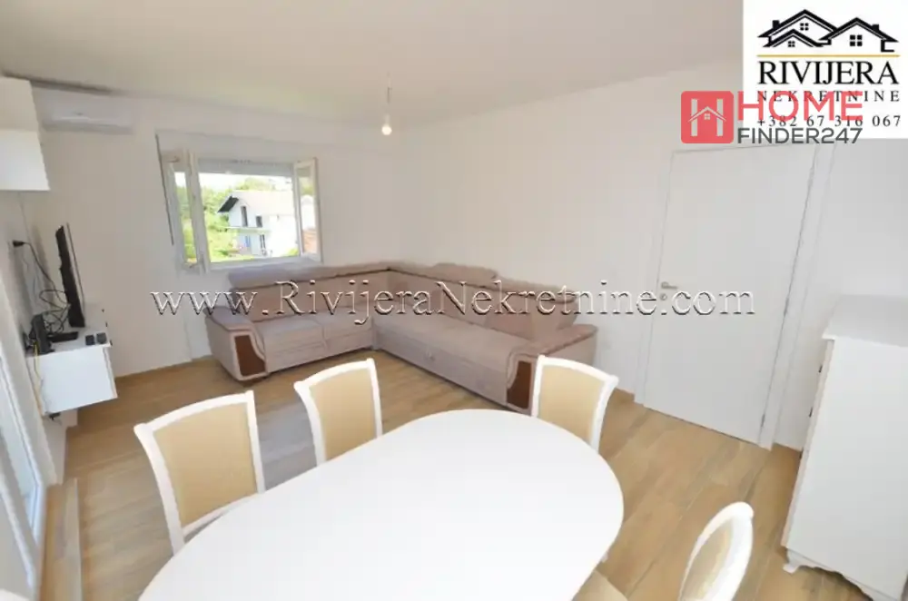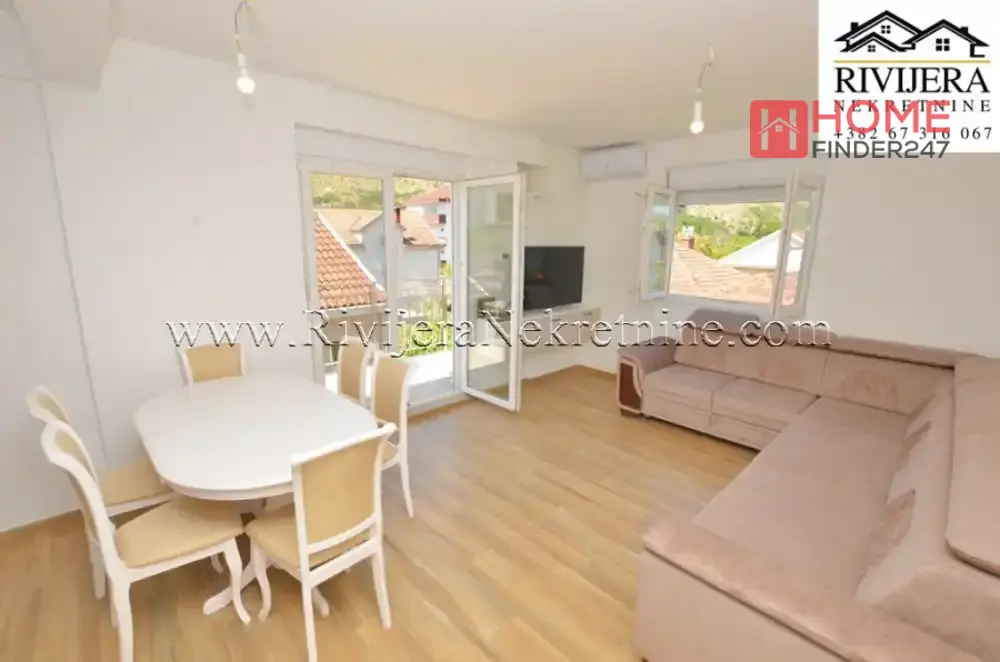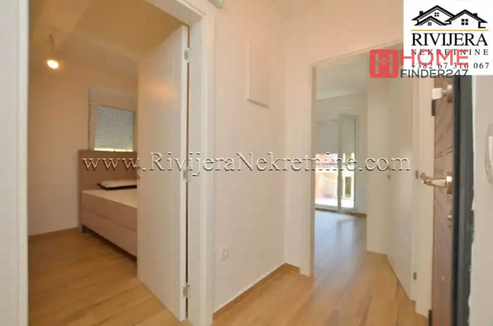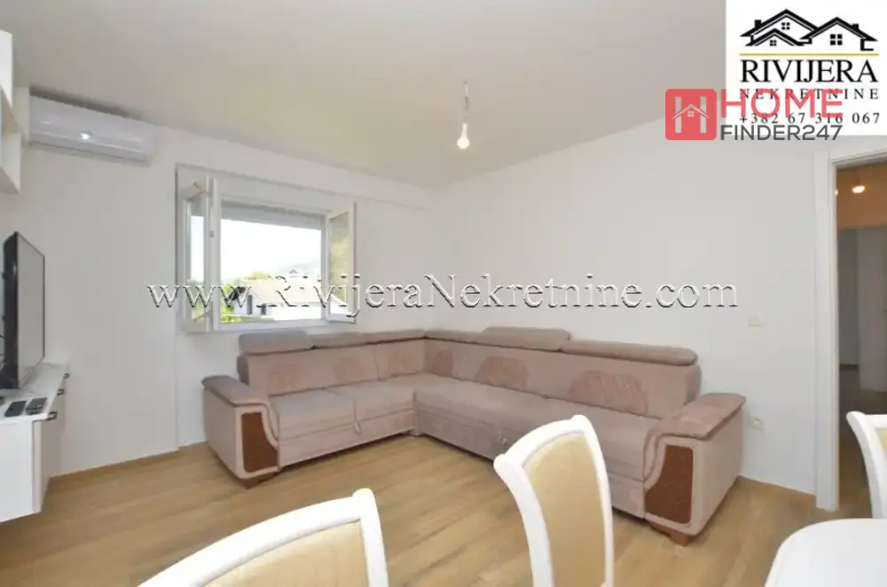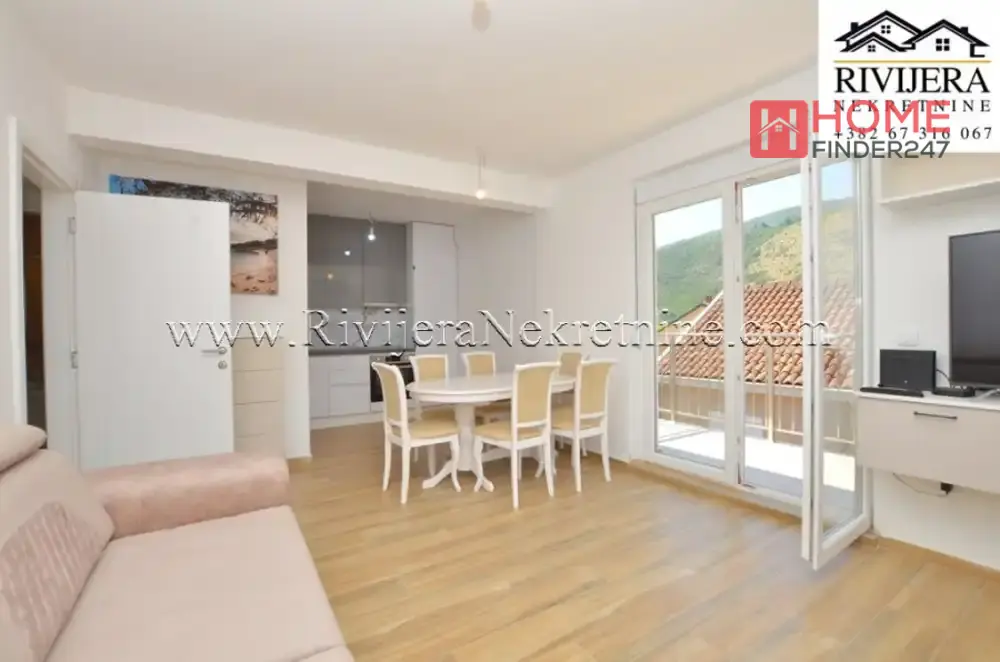 New two-bedroom furnished apartment Igalo Herceg Novi. Apartment area 60 m2, layout: entrance hall, bathroom, 2 bedrooms, terrace, living room with kitchen. Parking provided, distance from the sea 800 meters, price: 174,000 euros