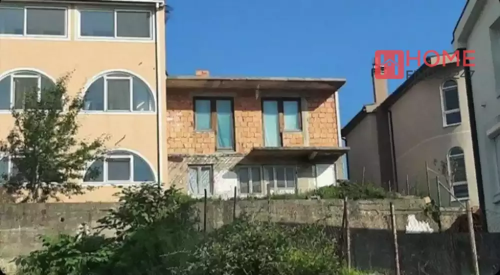Im oberen Bereich befindet sich eine Drei-Zimmer-Wohnung in halb fertigem Zustand (ein Teil ist nicht verputzt).
