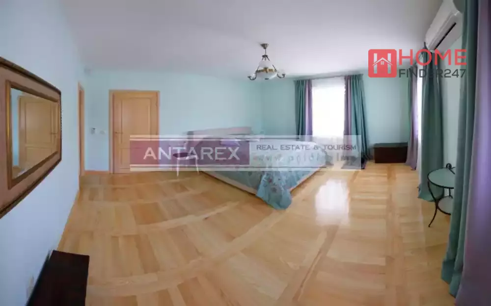Die Villa ist möbliert und mit Haushaltsgeräten ausgestattet. Highlights sind ein Kamin im Wohnzimmer, Terrassen rund ums Haus, eine BBQ-Terrasse oben, 7 Klimaanlagen, autonome Heizung, zwei zentrale Warmwasserboiler (je 200 l), 300 l Wasserspeicher, russische Holzsauna und ein Swimmingpool. Es gibt außerdem ein Zimmer für Servicepersonal (Waschen, Bügeln, Ankleide).