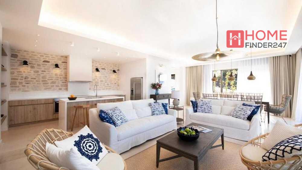 Die Villa erstreckt sich über 2 Ebenen und verfügt über vier Schlafzimmer, vier Badezimmer, ein Wohnzimmer sowie eine Küche mit Essbereich.