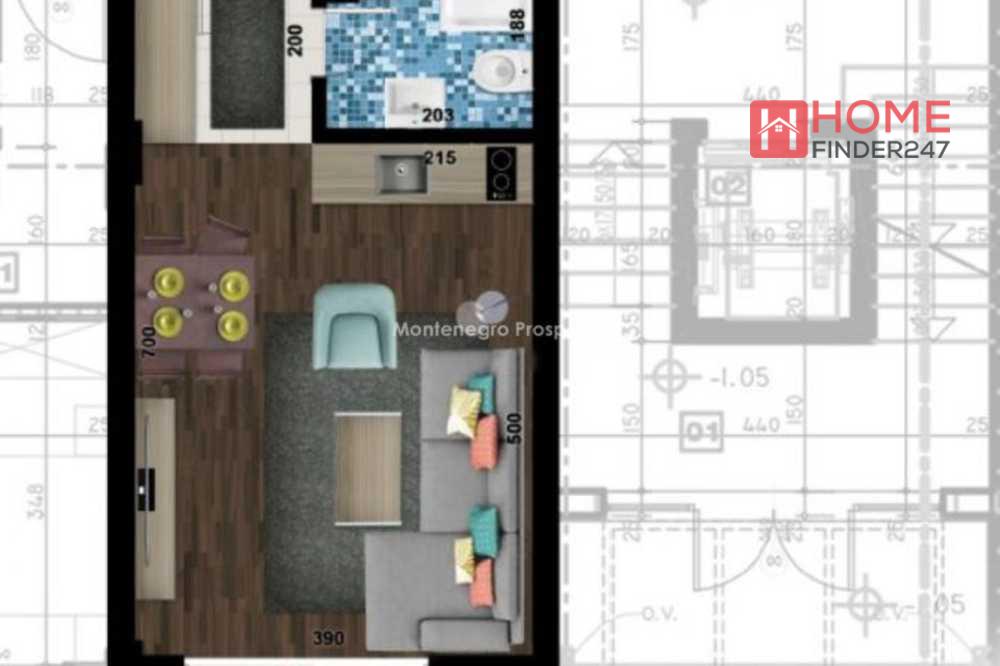 The property will comprise 6 residential floors and 50 apartments in total. In front of the building will be a courtyard, open parking and 21 garage space. There will be a management company, which will take care of common areas, courtyard, and a swimming pool. They will also provide services of renting out your apartments.