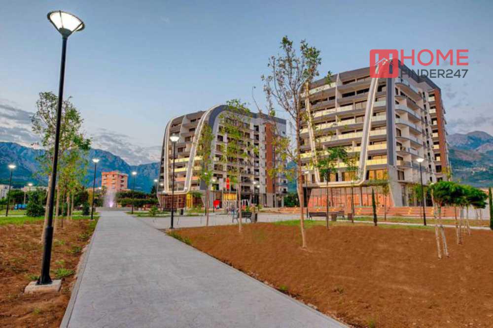 The apartments are located in a small complex that consists of two modern buildings. Large park of 30.000 sq m is in front of the buildings that has children’s playground, bicycle paths, walking area with a large fountain in the center and a place for pets.