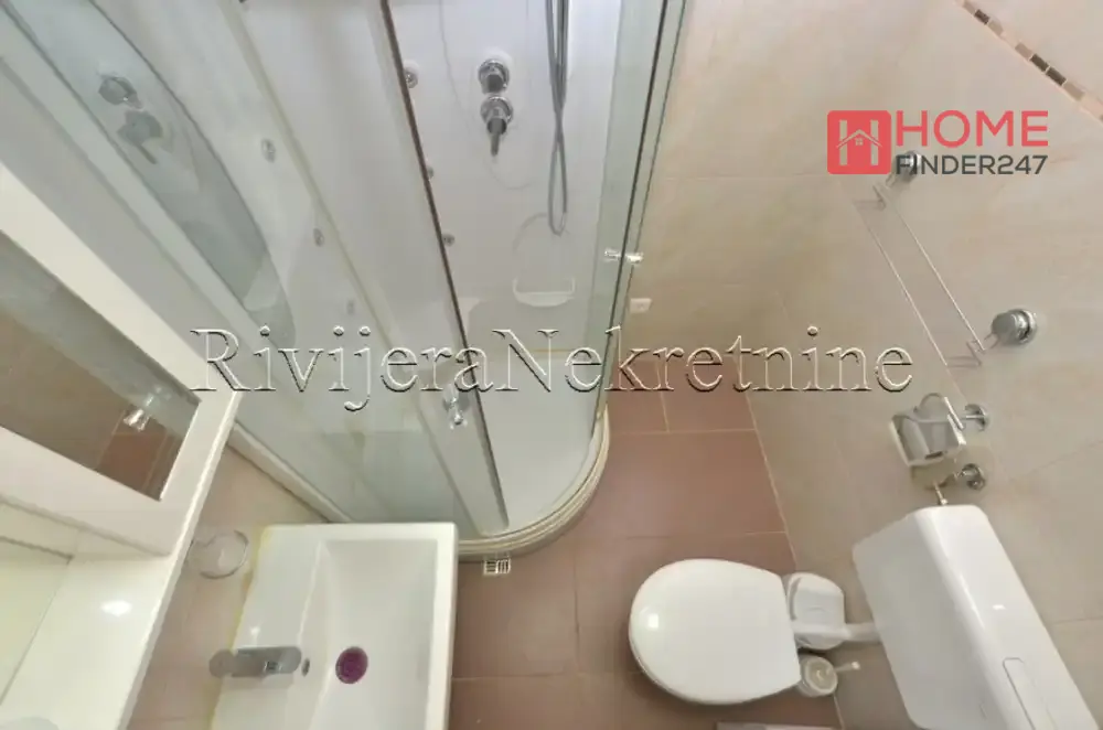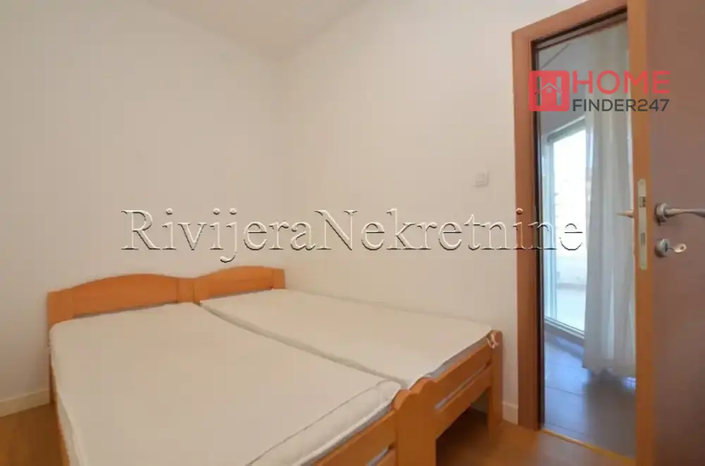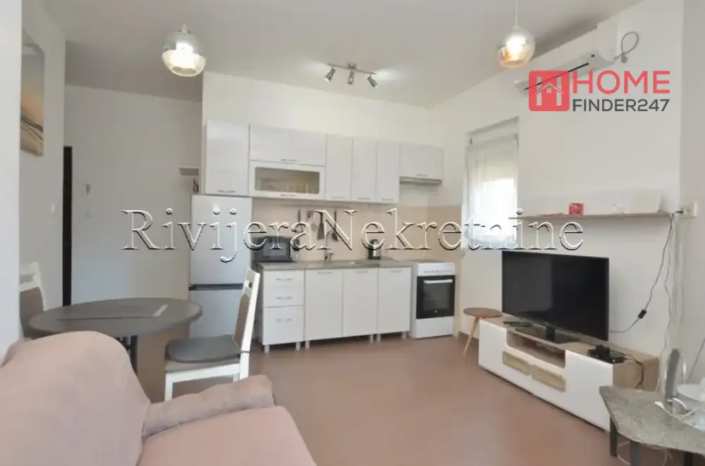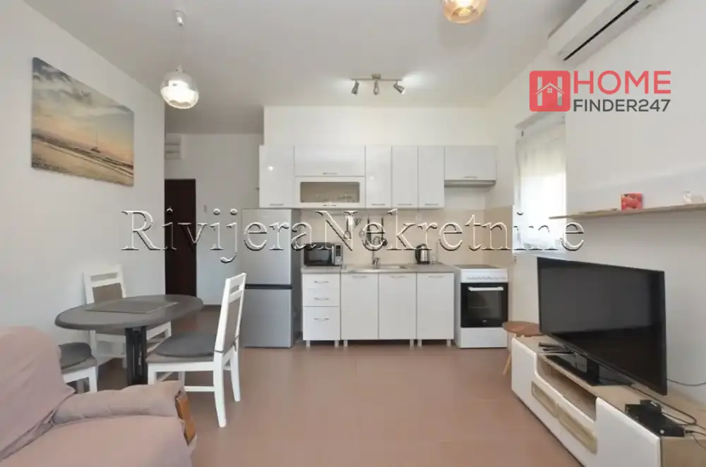One-bedroom apartment in Bijela, Boka Kotorska. Apartment on the ground floor, surface area 48m2. Layout of rooms: living room, dining room with kitchen, bedroom, terrace, and bathroom. Apartment in a small residential building, 200m from the sea, 15km from Tivat airport. Price: 135,000 euros