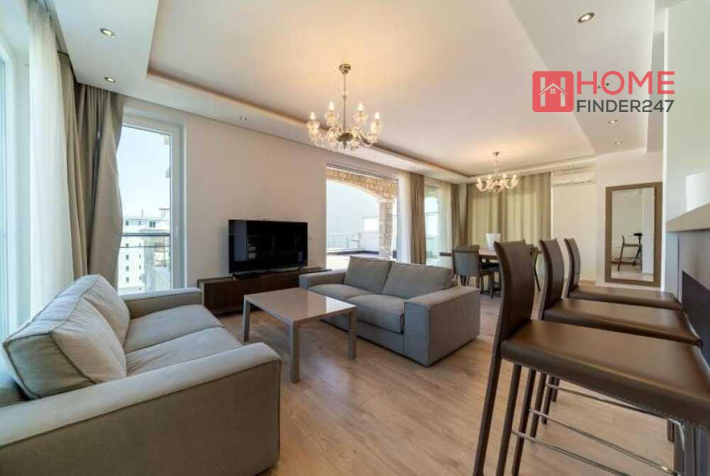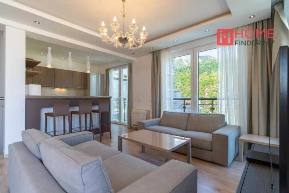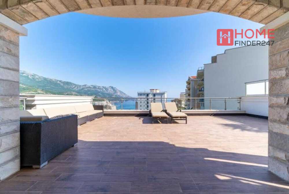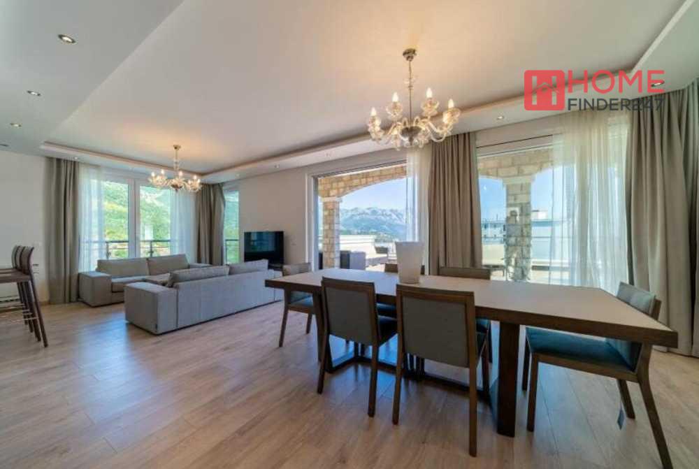 Magnificent new duplex in one of the most successful projects in Budva Riviera. Duplex is fully furnished with new Italian furniture. The development is distinguished by modern style, construction and finishing of high quality. Duplex comprises living room with kitchen and dining area, 3 bedrooms, 2 bathrooms and spacious terrace with amazing view over the sea.