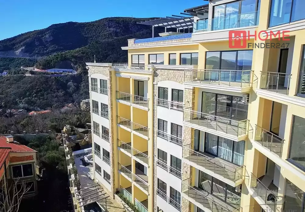 We present you a luxury apartment in a complex of the highest quality. Enjoy a morning cup of coffee on your large terrace with fantastic views of the crystal blue sea and the unique Sveti Stefan.