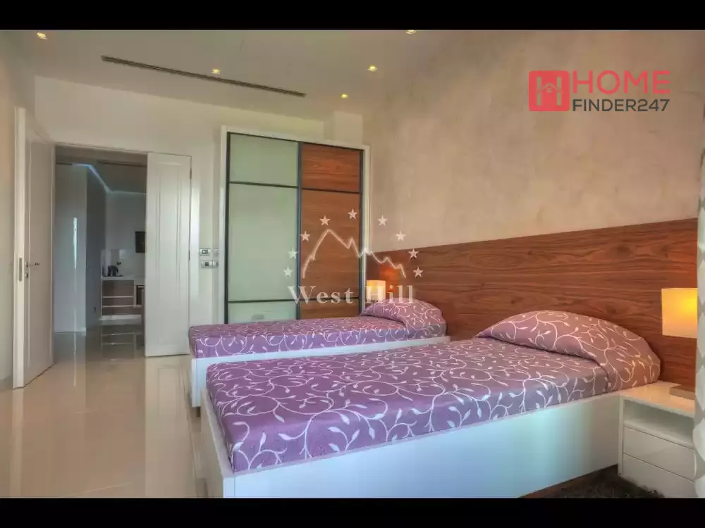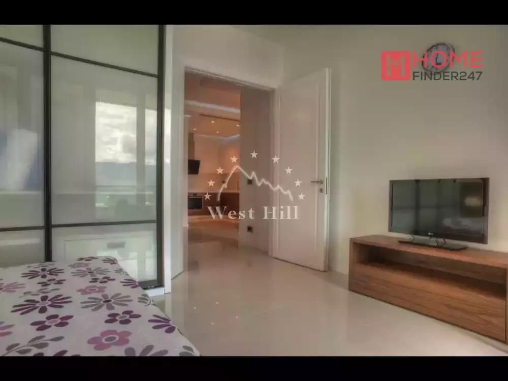 Master bedroom is equipped with a king-size French bed, a wardrobe and TV. Another bedroom has two single beds and a wardrobe. The property further benefits from a centralized cooling and heating system; high-speed wireless Internet, video interphone and a cable TV.