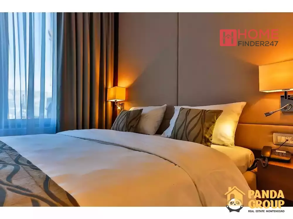 Cozy and spacious studio on an area of ​​47 m2 with a magnificent view of the sea and the Old Town. The apartment is located on the 8th floor in the WOW hotel complex in the center of Budva.