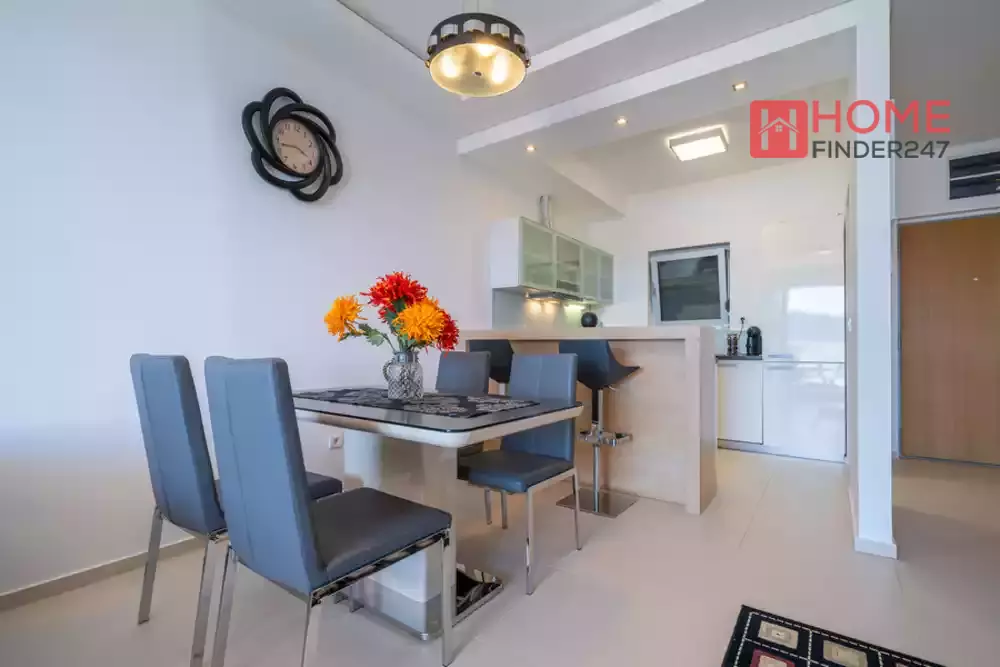 The apartment has an area of 75m2, is located on the second floor and has a beautiful view of the sea and the surrounding area.