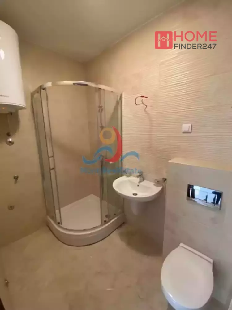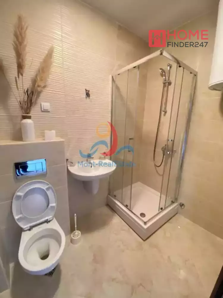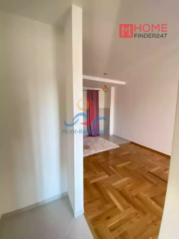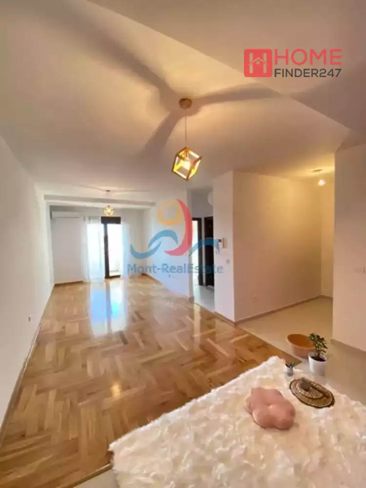 An apartment for sale in Bečići, one bedroom, with a total area of 48m2. The apartment has a bedroom, kitchen, living room with dining area, hallway, bathroom and balcony. The balcony offers a partial sea view. The price of the apartment is 96,000 euros, and it is for sale unfurnished. Additionally, there is the possibility of buying a garage at a price of 22,000 euros, which is 21m2.