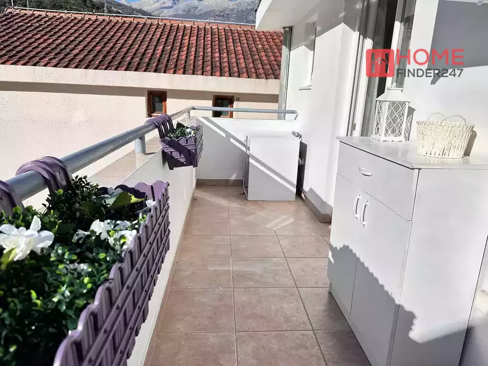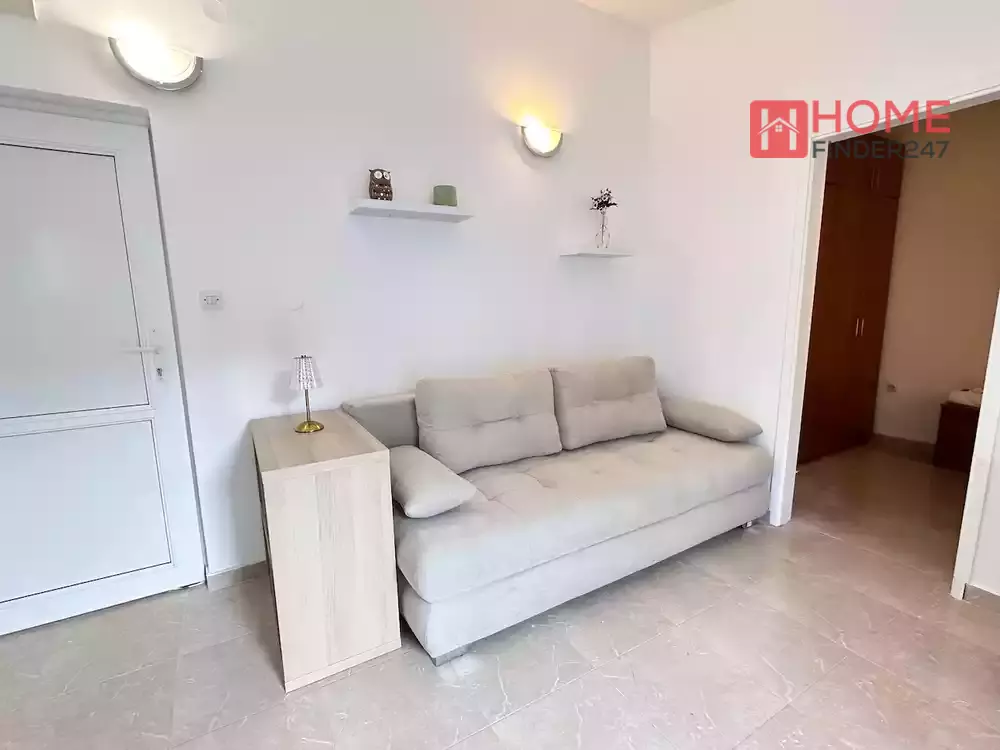 A small one-room apartment for sale in the Golubovina settlement in Budva. The apartment is located on the top floor of a residential building without an elevator. The area of the apartment is 30 m2 and consists of one bedroom, hallway, bathroom, kitchen, living room and terrace.