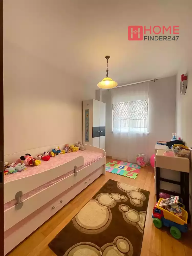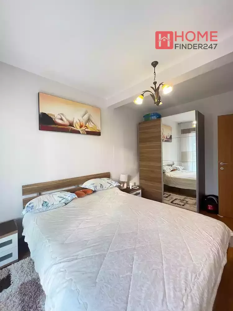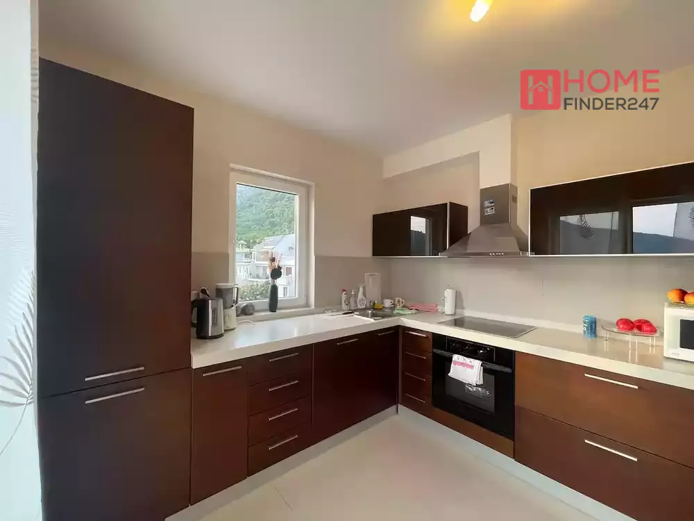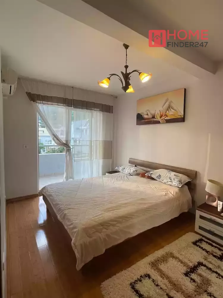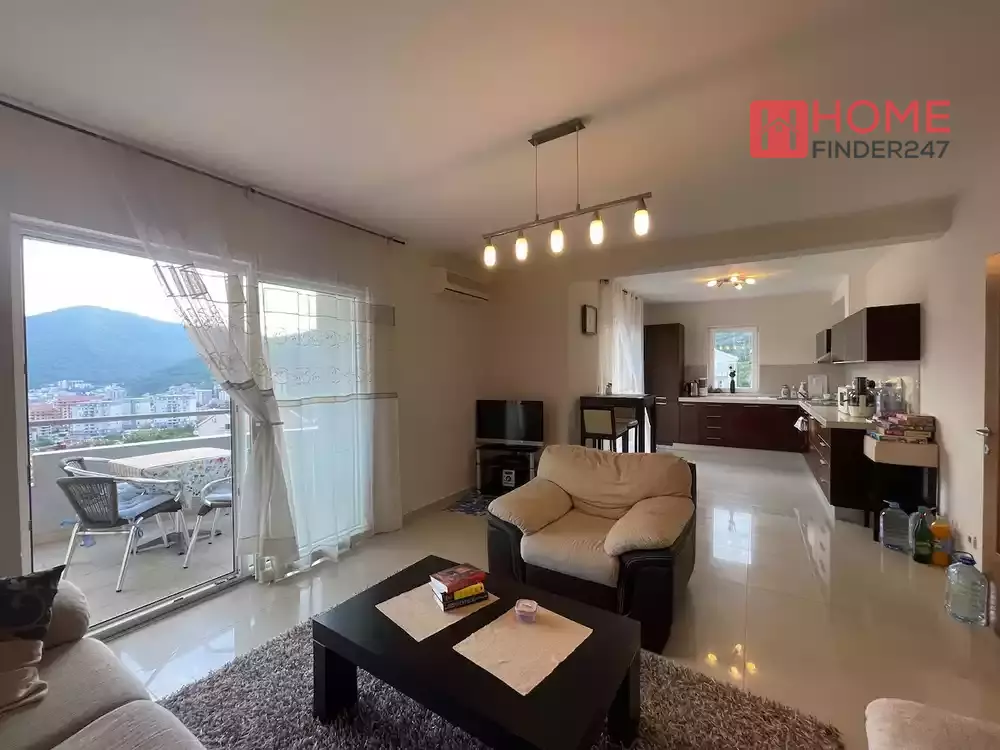 Spacious two-bedrooms apartment for sale in the Lazi settlement in Budva, 1.5 km from the sea. The area of the apartment is 76 m2 and it is located on the second floor of a residential building without an elevator. It consists of a hallway, a bathroom, two bedrooms, a toilet, a living room with a kitchen and dining area and a terrace with a beautiful panoramic view of the sea. The apartment is for sale fully equipped with furniture and appliances.