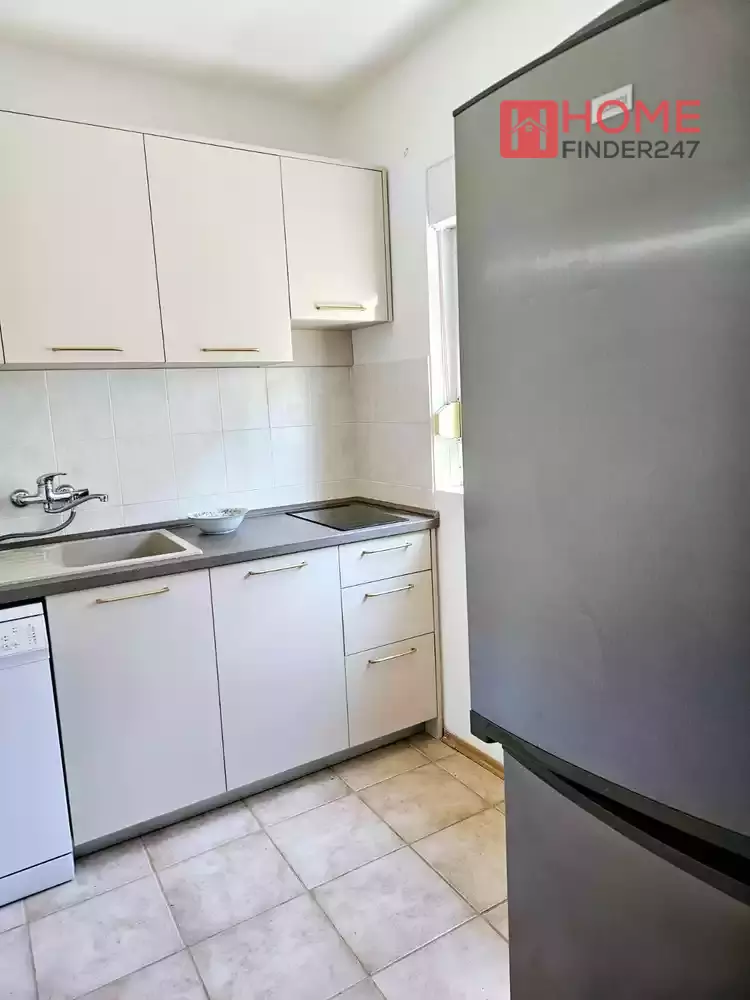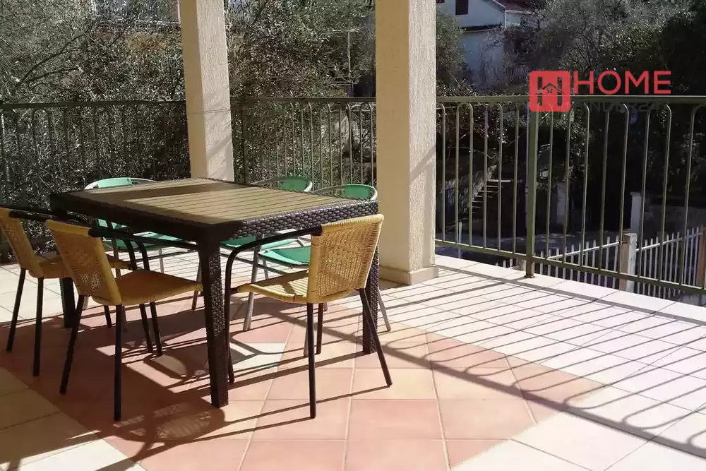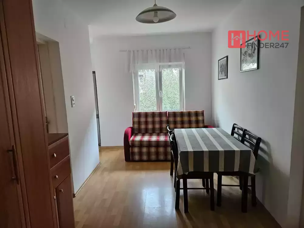 One bedroom apartment for sale in the Podkošljun settlement in Budva, near the Forsage restaurant. The area of the apartment is 60 m2 and it is located on the first floor of a residential building without an elevator. It consists of a living room, kitchen, dining room, bedroom, bathroom and a large terrace.