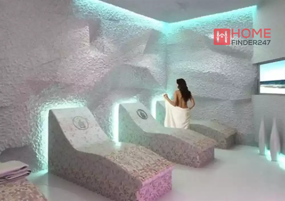The 1st floor of the main tower is a business centre and includes offices as well as a congress hall. On the roof of the main tower is an open swimming pool with a cocktail bar and restaurant.