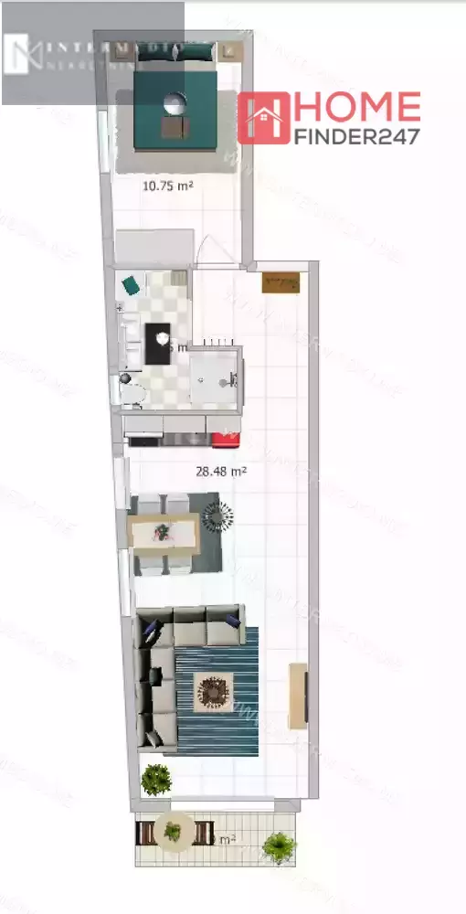 The apartment is south-facing, bright and airy with many glass surfaces.