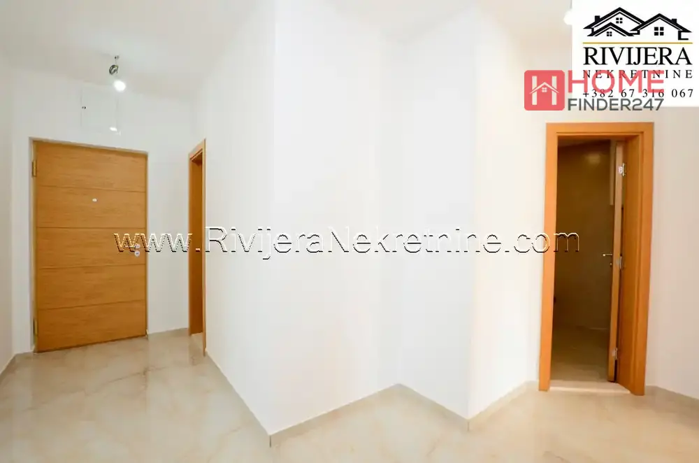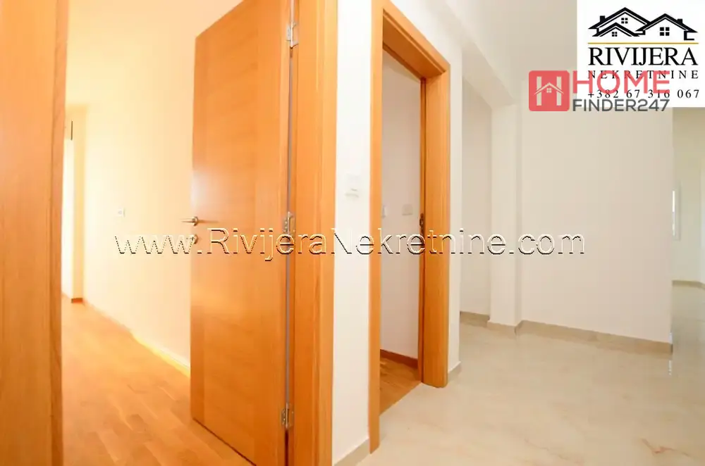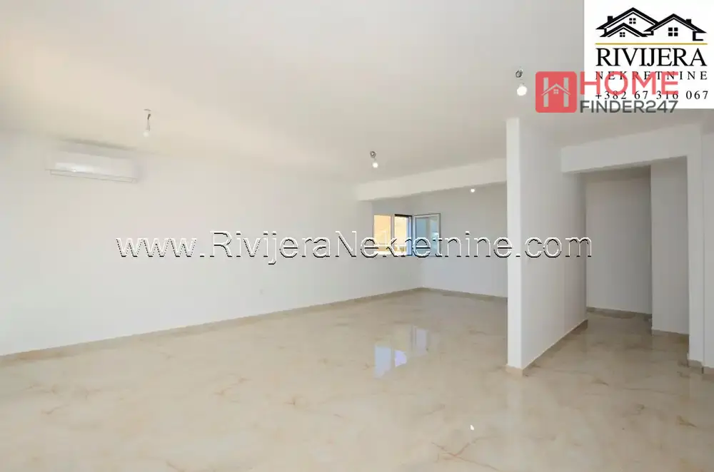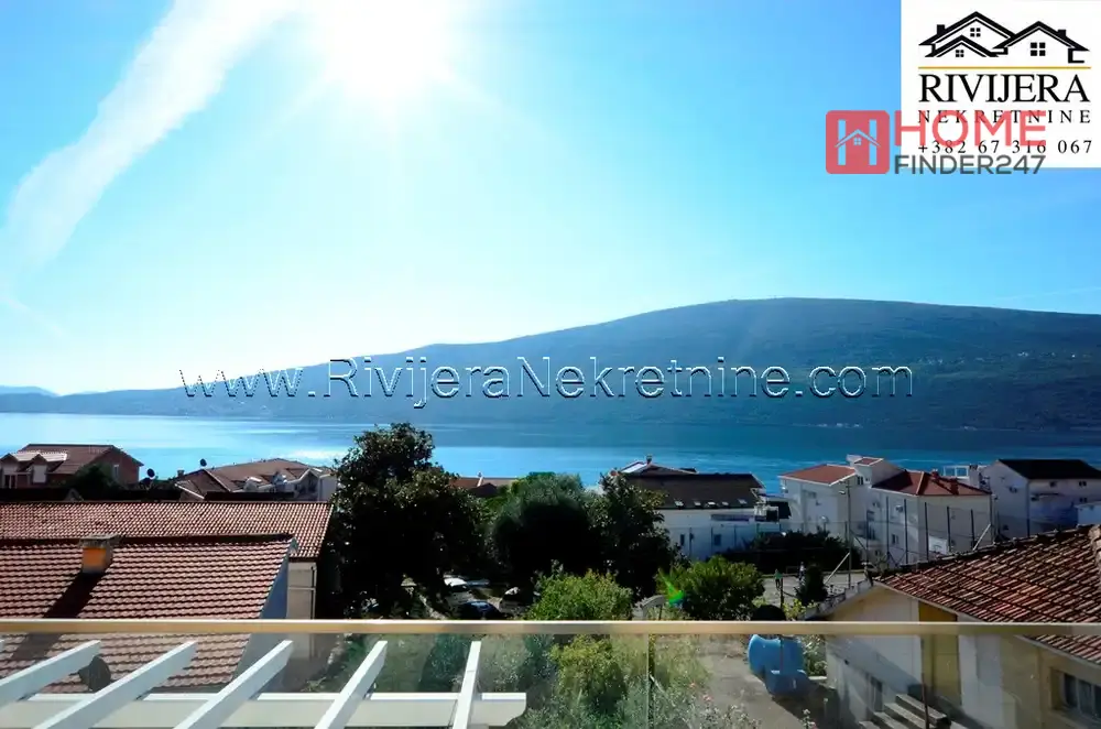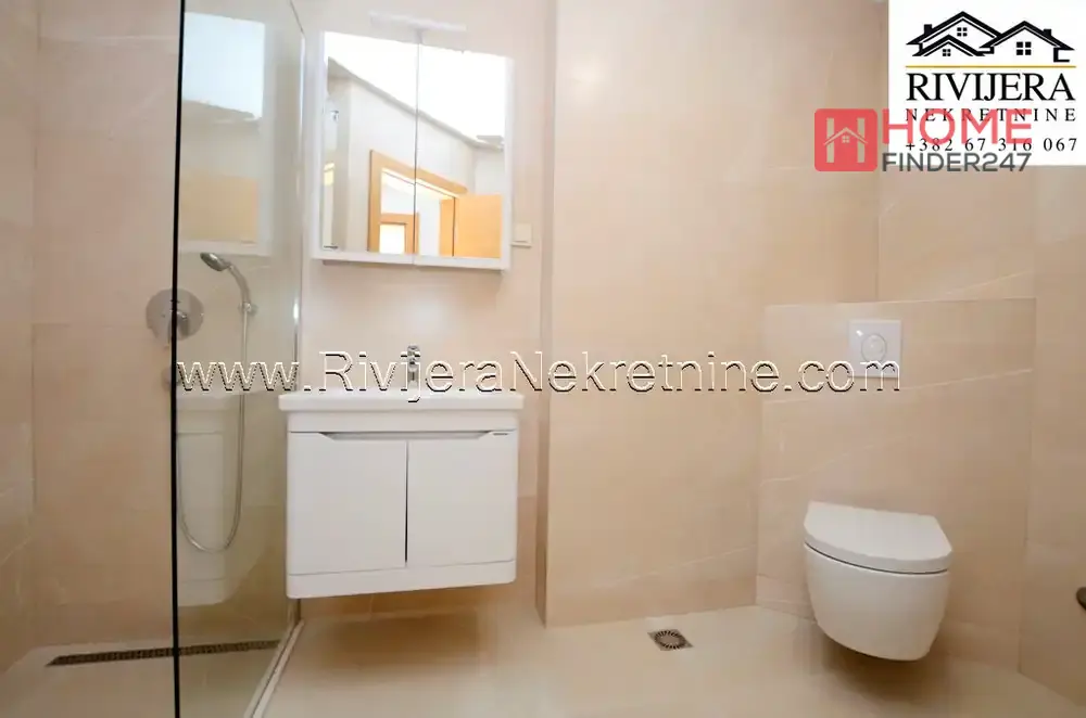 A new exclusive apartment with a yard overlooking the sea Djenovic. High-quality construction, built-in materials, south-facing, sunny apartment. Attractive location near the sea, 1 km from Portonovo. The total area of the apartment (with covered terraces) is 157 m2 consisting of two bedrooms, two bathrooms, a kitchen, a living room, large south terrace facing the sea. Below the apartment are two furnished one-room apartments of 58 m2 each (with terraces, south-facing, sunny), a storage room of 15 m2, a fenced, cultivated yard of 233 m2, and an underground garage (elevator from the garage to the apartment). Price on request