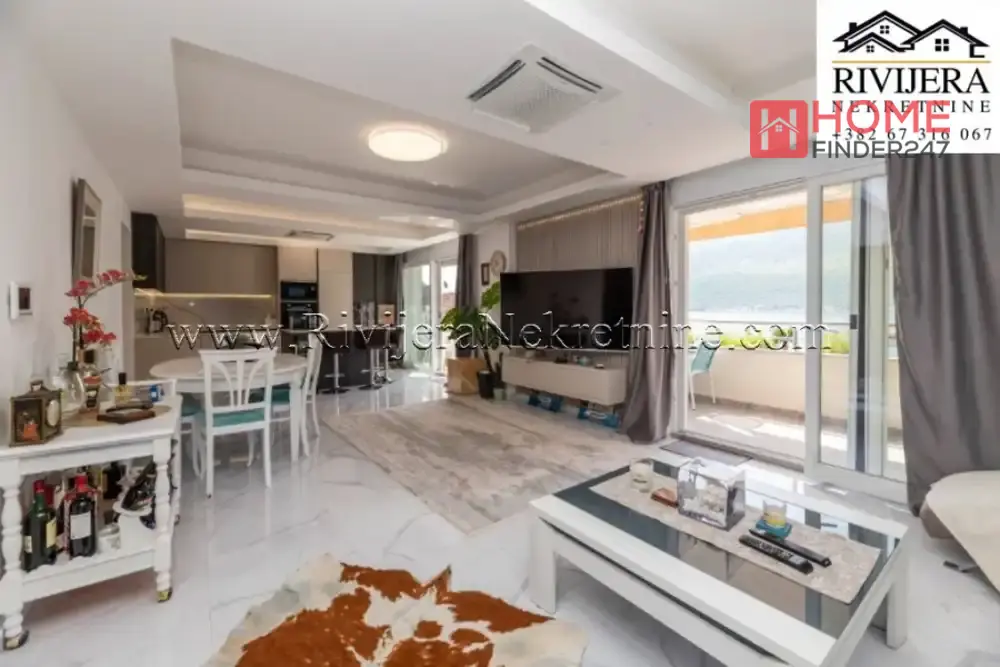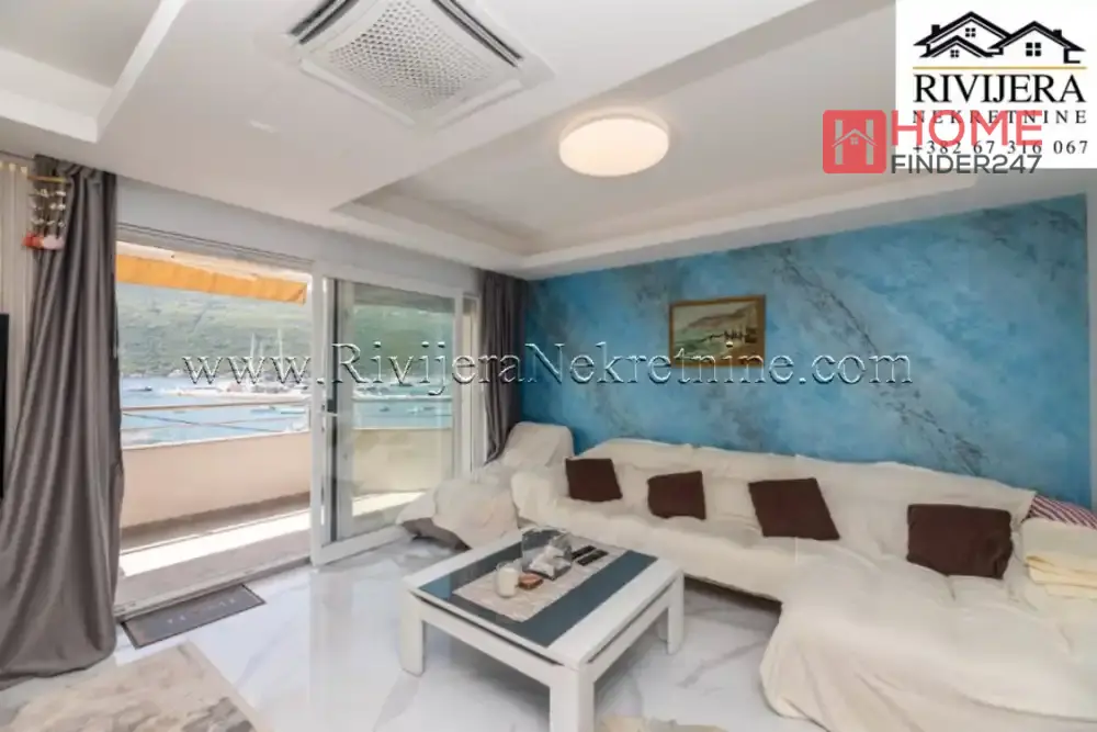 Discover this beautiful three-bedroom apartment with stunning sea views in the charming town of Djenovici, Herceg Novi.