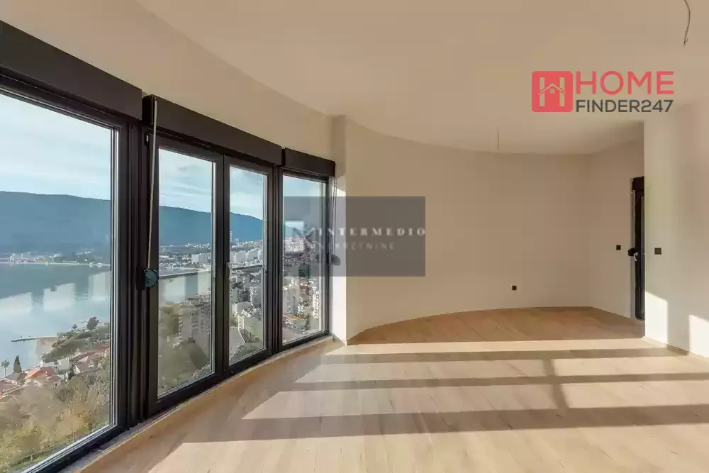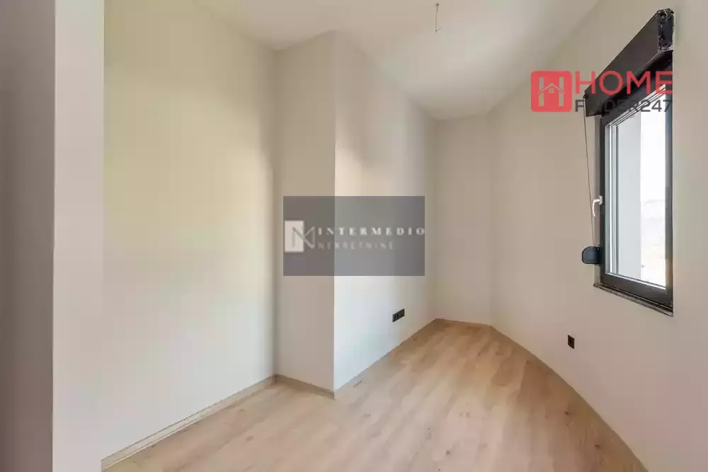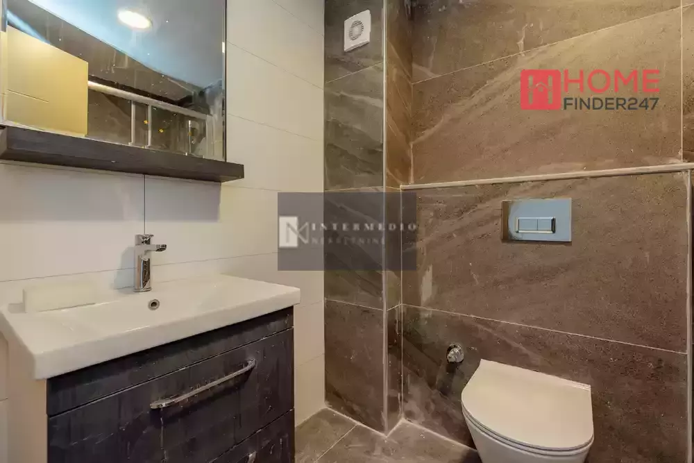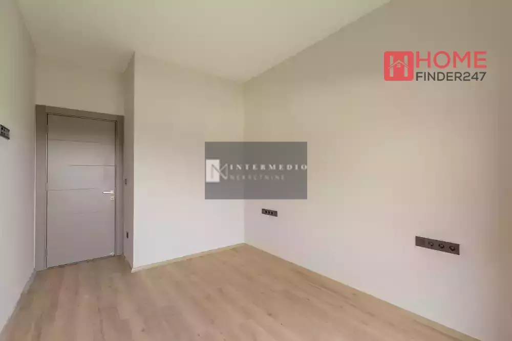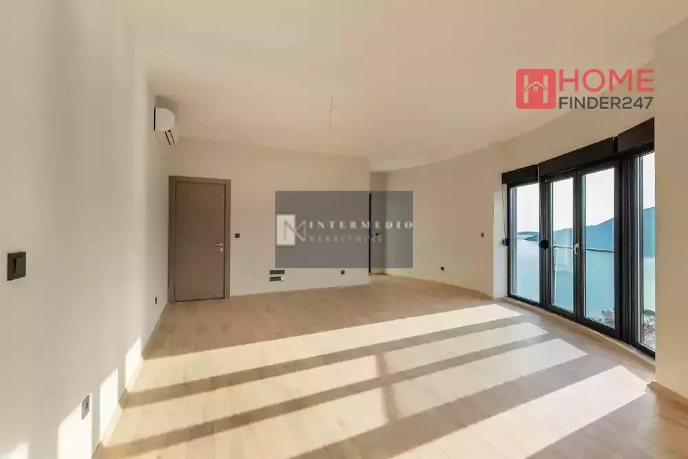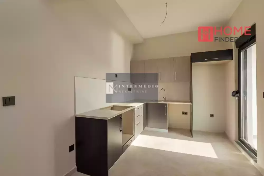 Equipped with kitchen elements without appliances, bathroom sanitary ware and air conditioning in the living room.