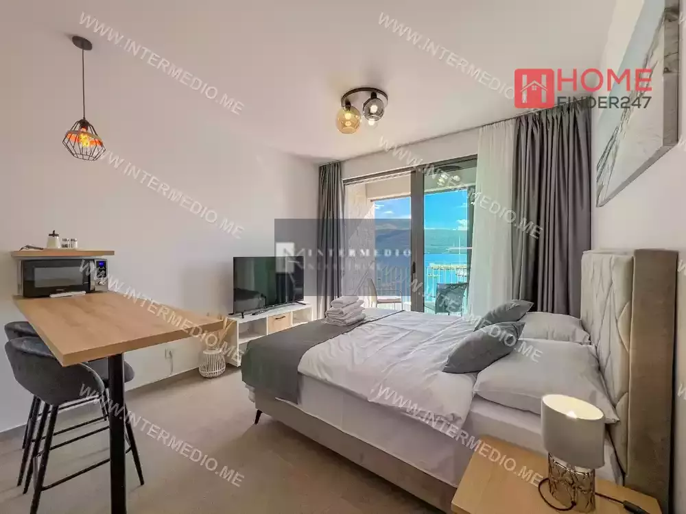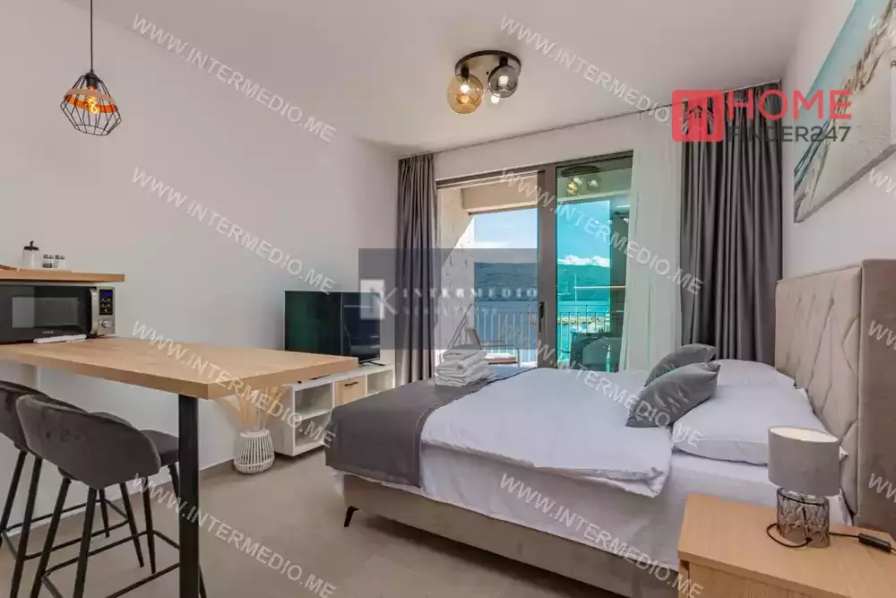A brand new furnished studio apartment on the seafront in a luxuriously built building is for sale.