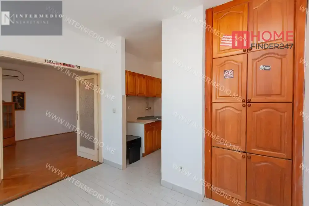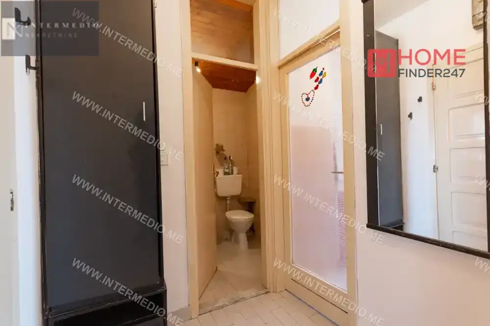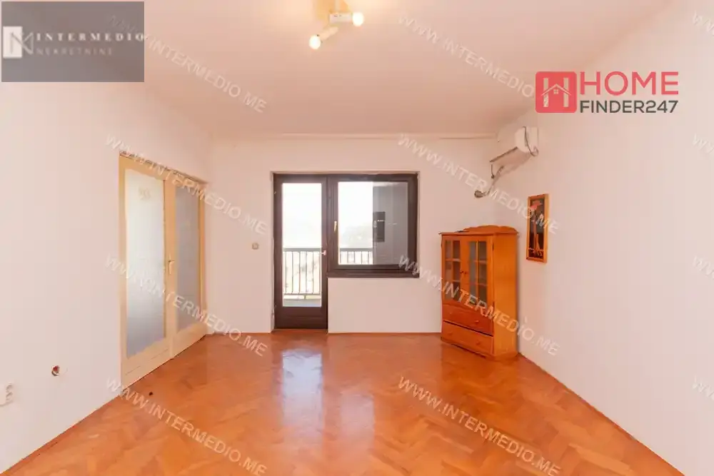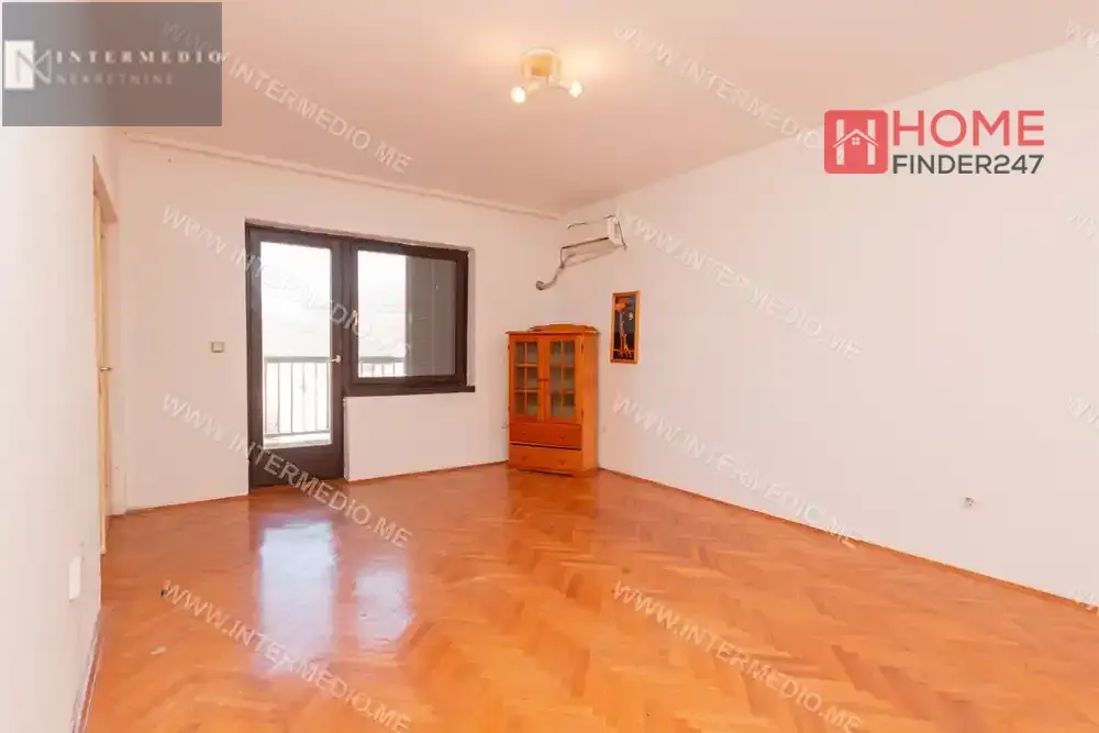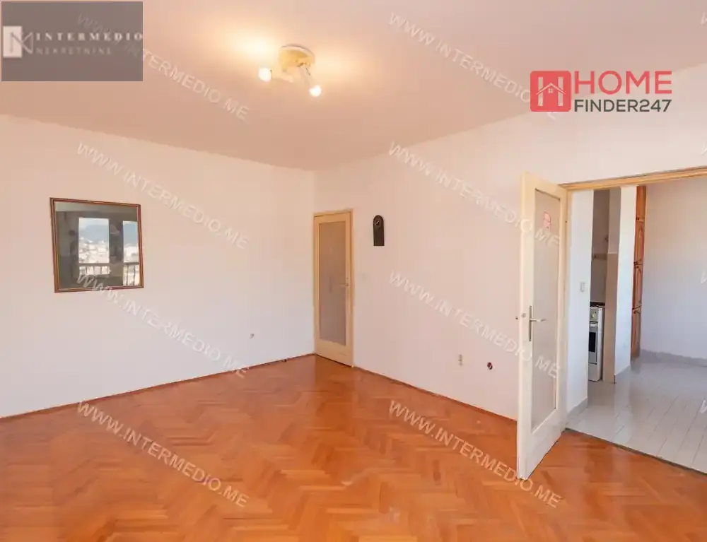 The living room has a well-preserved parquet floor, while the rest of the apartment is in its original condition and requires renovation.