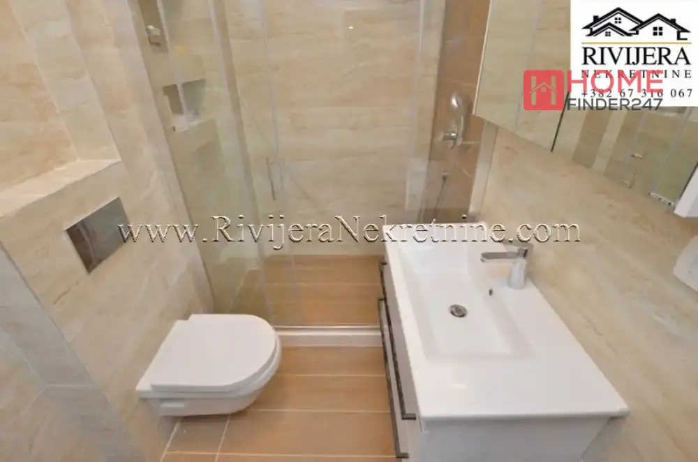 Two-bedroom apartment on the seafront in Djenovic, Herceg Novi. Apartment area 96 m2 (registered as 68 m2), third floor. Layout: entrance hall, two bedrooms, bathroom, terrace, living room with kitchen, price: €249.660