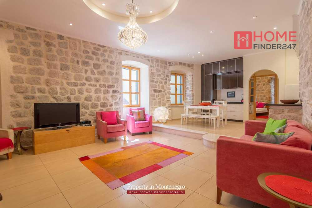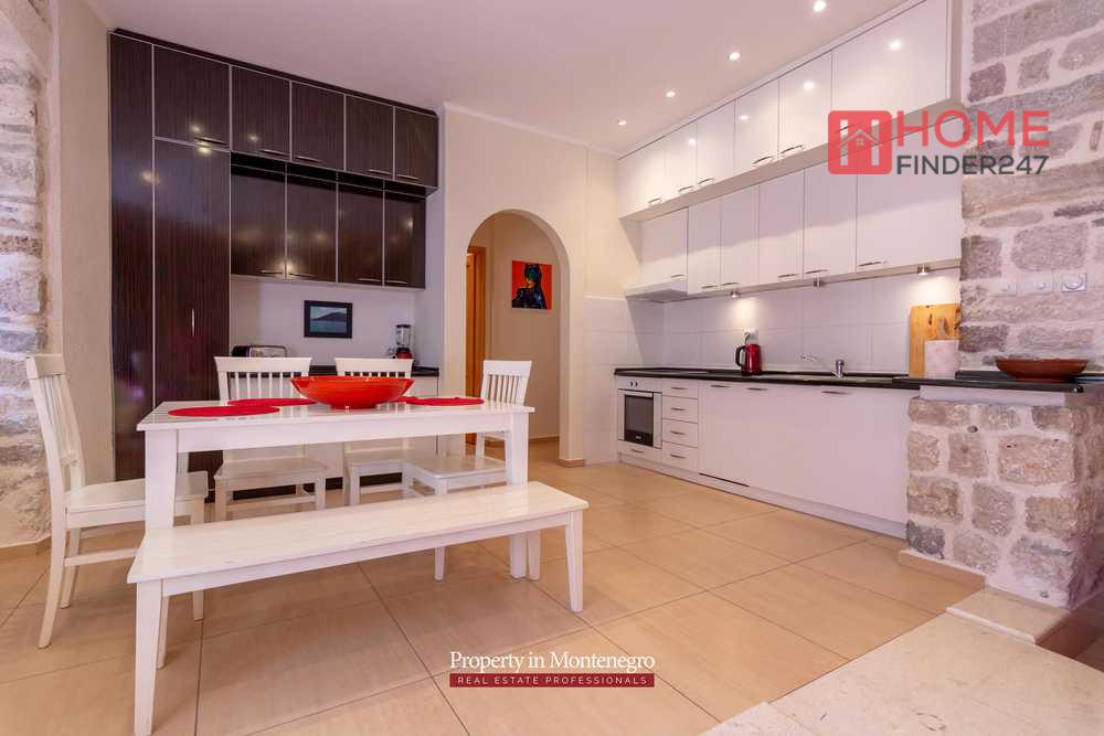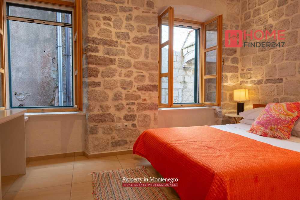 This four bedroom apartment of 100 m2 is beautifully restored and fit in its historic surroundings. The view from this property is the natural extension of its interior made of stone with few modern touches to provide you with comfortable living. You will enjoy and soak the mixture of sea food, salt and rhythm of the music each day.