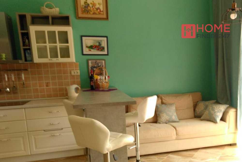 Size of the apartment: 63 m2. Located on the third floor. Fully furnished with underfloor heating and air conditioning in each room. There is a swimming pool, children’s playground, parking.