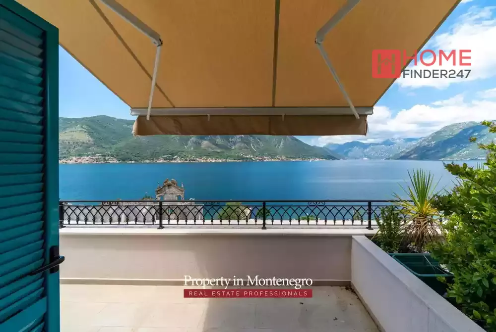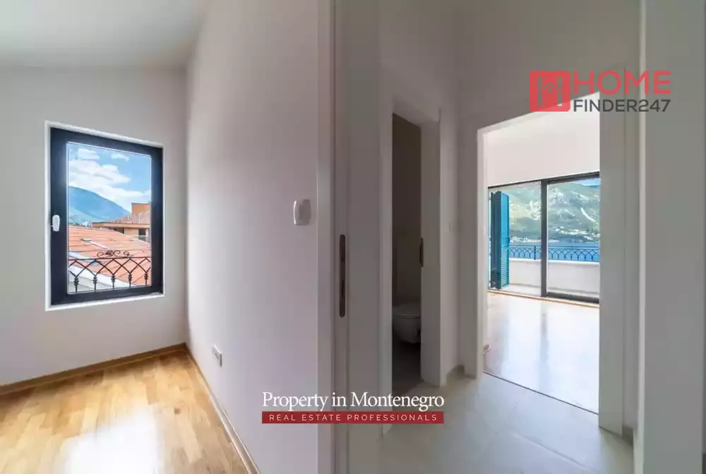 A beautiful and spacious two-bedroom apartment has 75m2. It has a terrace that offers an incredible panoramic view of the sea and mountains. Apartment is located in a quiet and beautiful part of Dobrota. Within a few minutes walk and about 30m away there are several beaches, as well as all the necessary infrastructure – restaurants, cafes, shops and a long promenade by the sea, which can walk to the Old Town of Kotor.