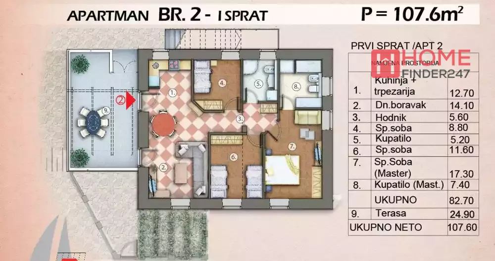 The property is located only 30 meters from the sea front and there are only five apartments in the development: