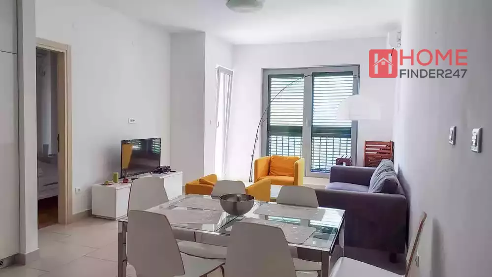 This 2 bedroom, 2 bathroom, 74 sqm apartment is in Lavender Bay, Morinj. You have a swimming pool, gym and sauna in the complex.