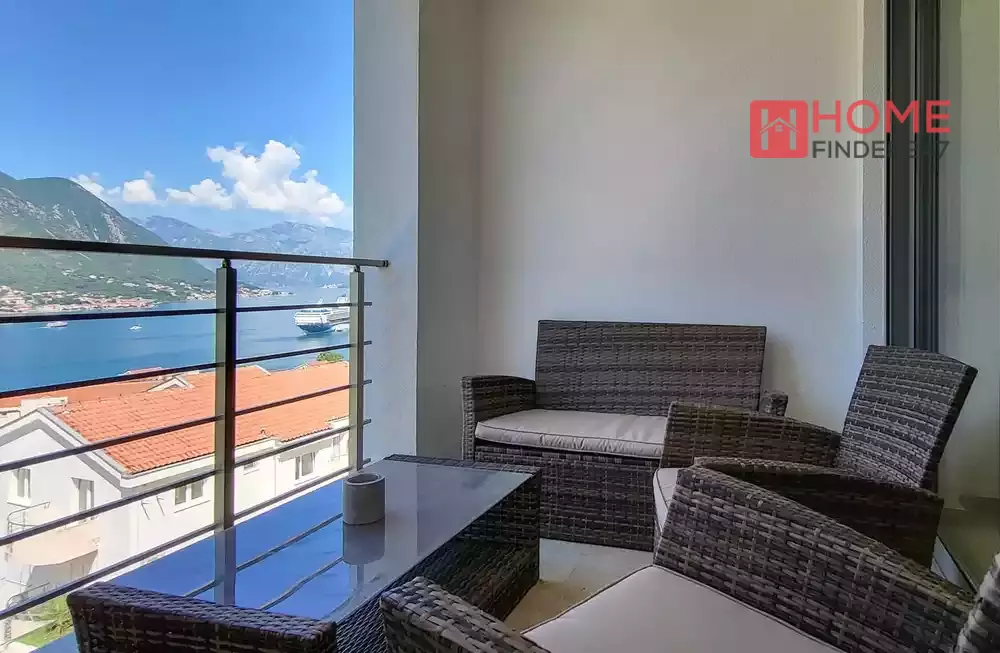 Fully furnished one-bedroom apartment with panoramic sea views located in Dobrota, Kotor.