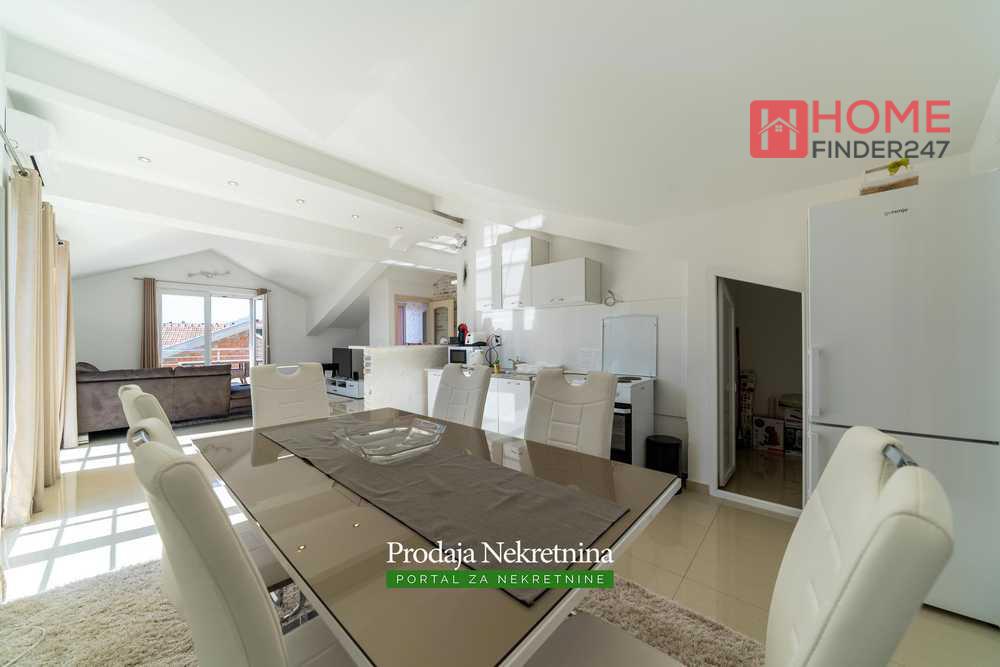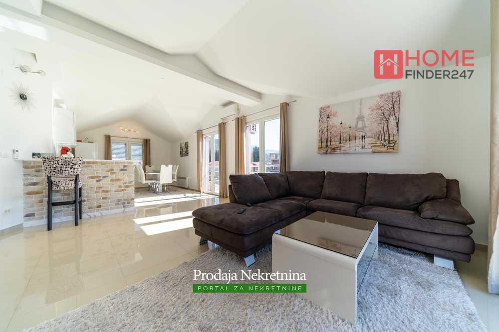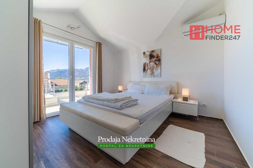 The apartment in a quiet village Donja Lastva is located just a few kilometers from the marina and village Porto Montenegro. The apartment is located on the last floor of the building which has a great location about 70m from the beach, promenade, restaurants, cafes and other facilities.