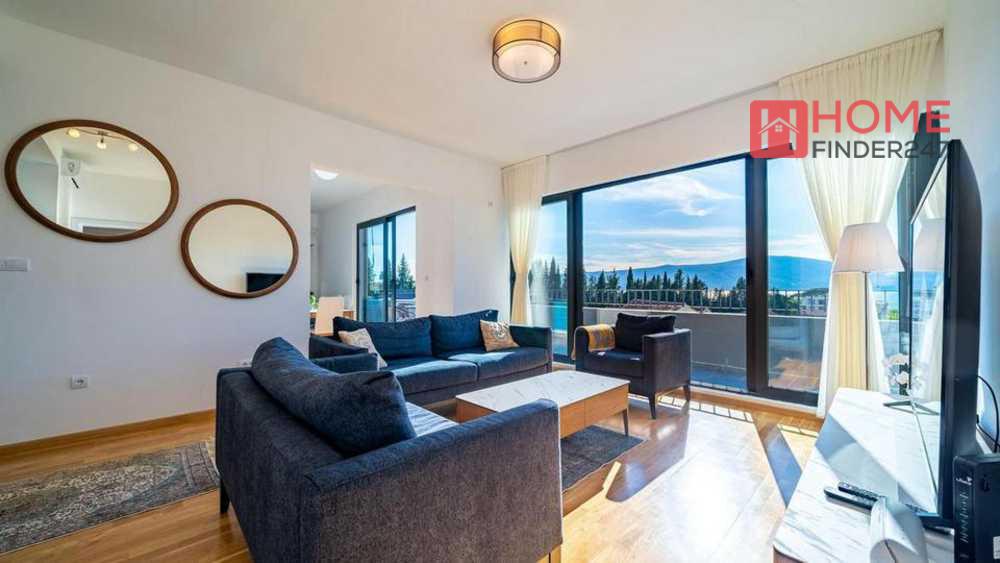 This luxury, beautiful and spacious apartment is located near the marina Porto Montenegro in a new and beautifully decorated complex with private parking and swimming pool.