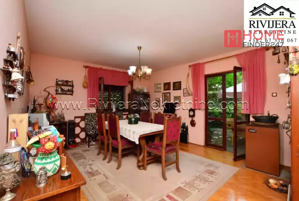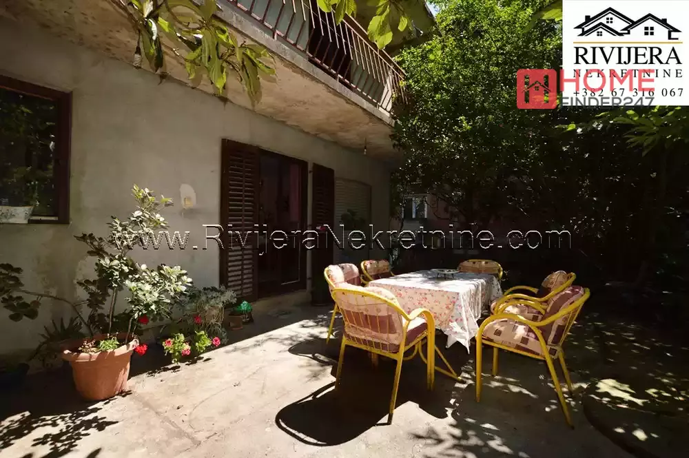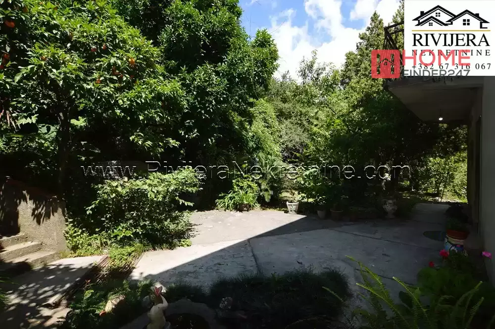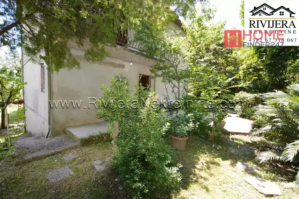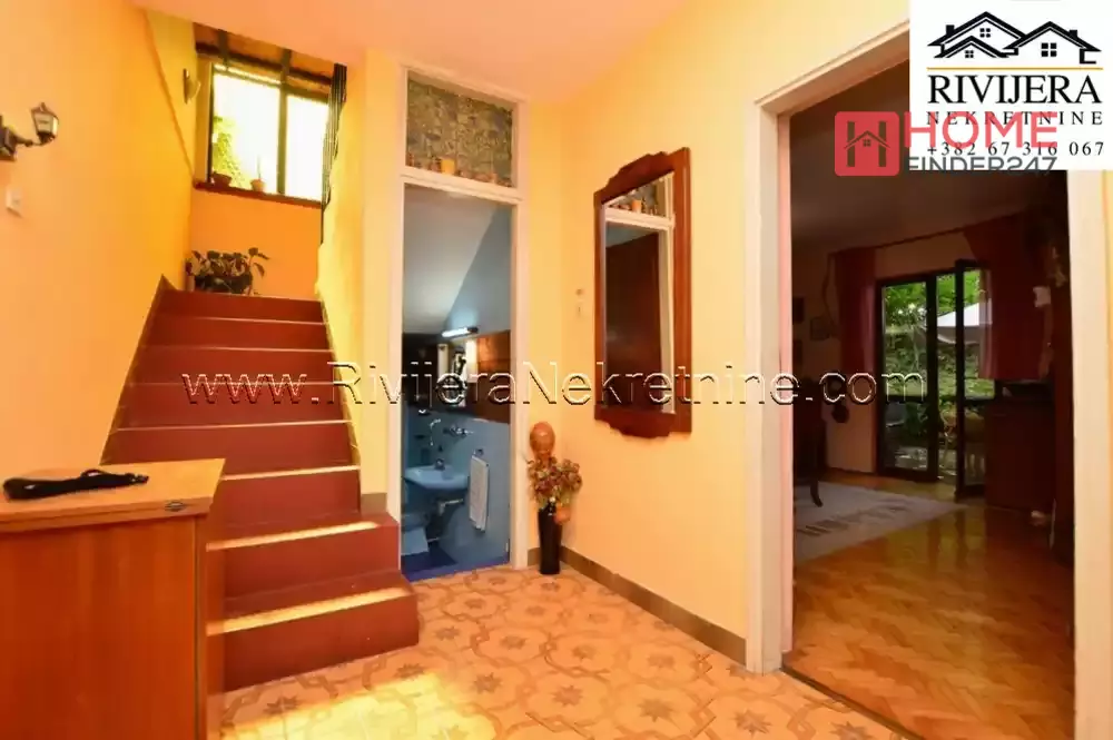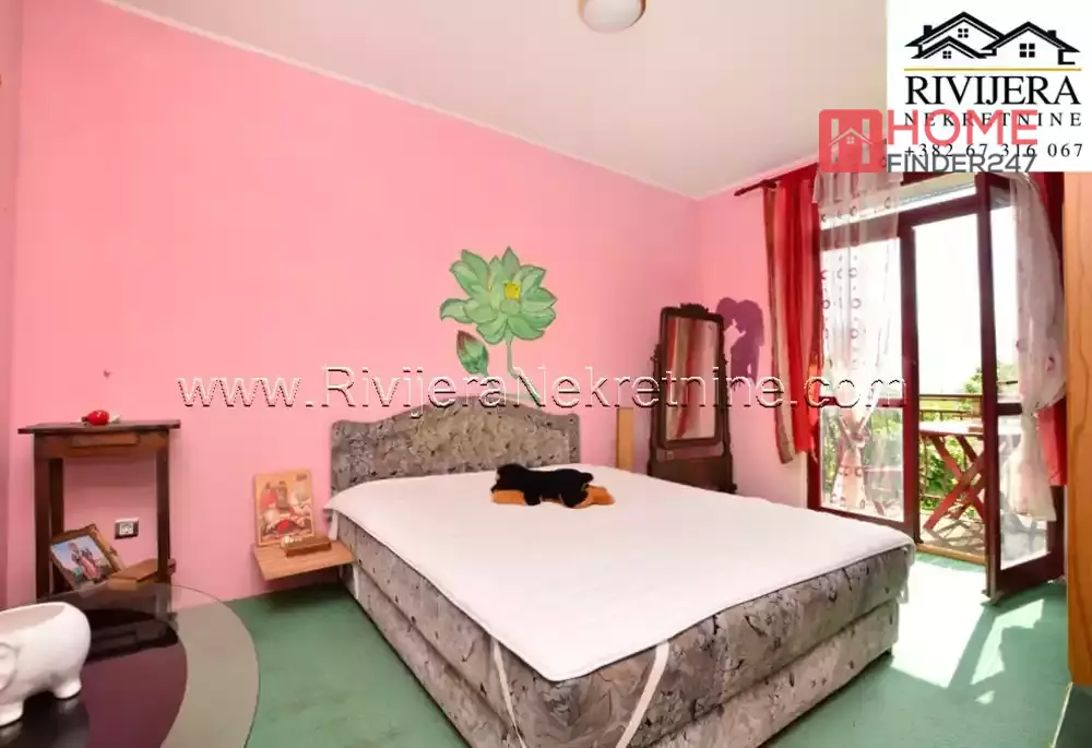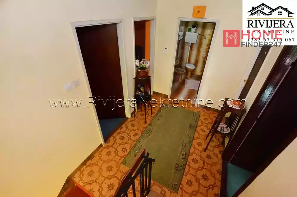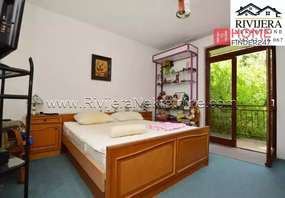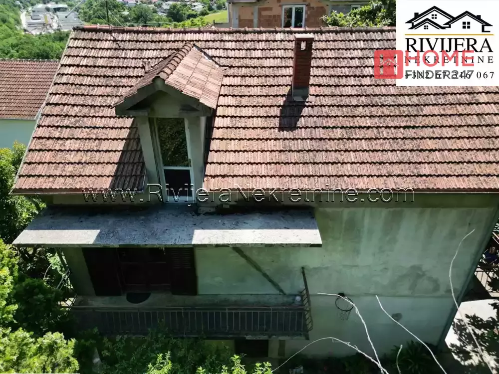 The family house near the center of Herceg Novi. The house area is 140 m2 + attic, with a larger land area of ​​2,223 m2. Room layout: 4 bedrooms, 3 bathrooms (1 unfinished), living room with kitchen, 5 terraces.