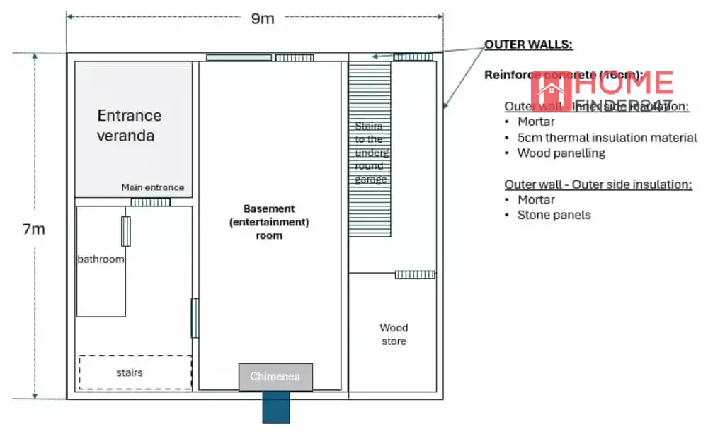 The house also has an underground garage with space for two vehicles, connected to the house by internal stairs. The house is secured with video surveillance, and accessible via phone/computer.