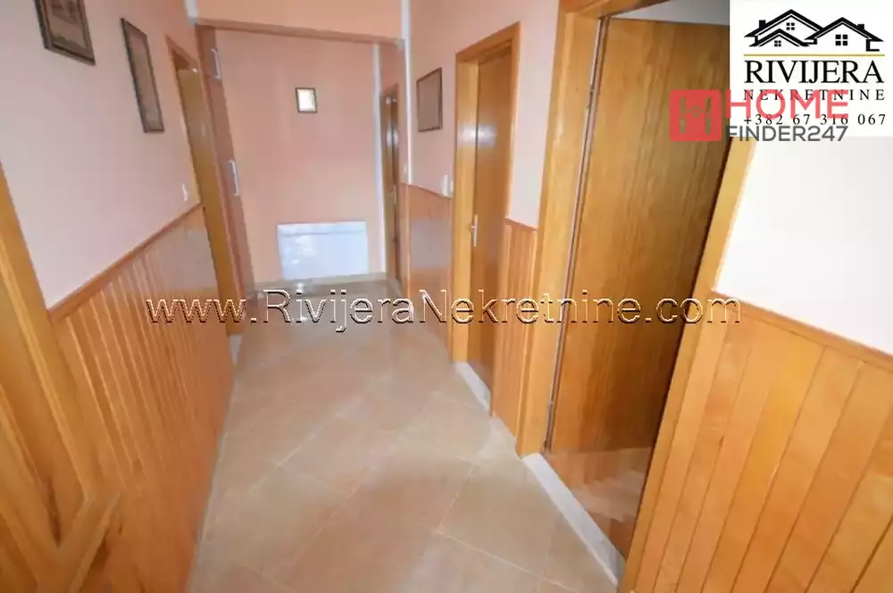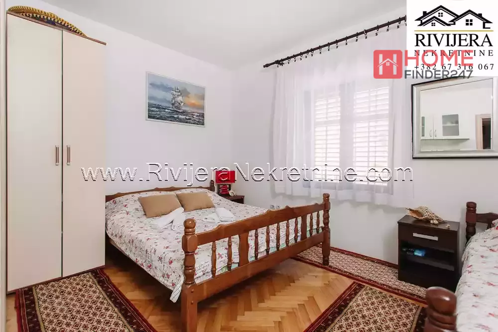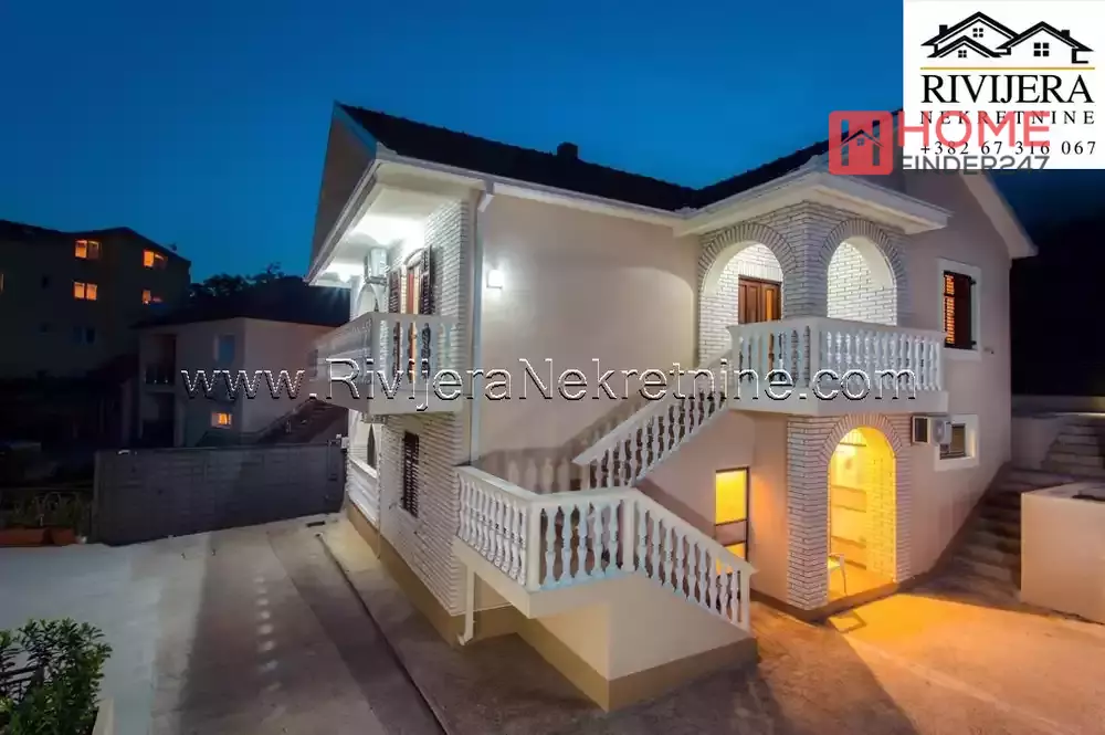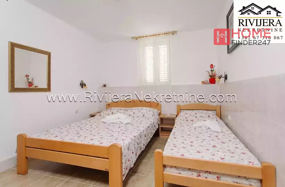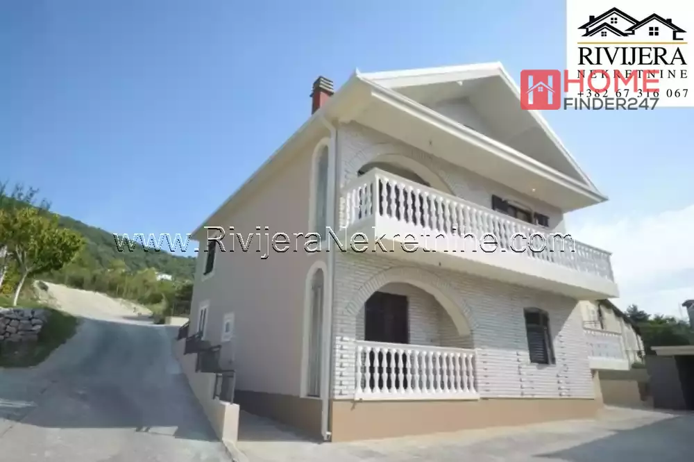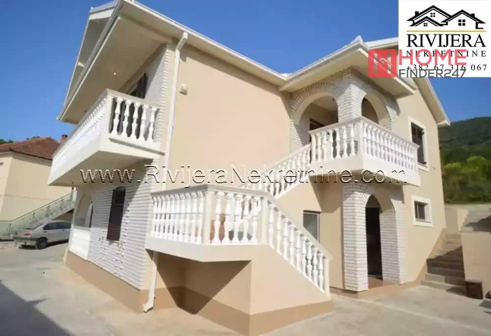 The house has a total area of 170 sqm and two floors. The ground floor has three apartments; the first has a nice and comfortable two-bedroom apartment. Parking space is provided in the courtyard, and garage space is 20 sqm. House is in good condition and is very attractive property. The price is on request. Agency RivijeraNekretnine.com offers the most attractive properties for sale and rent in Montenegro.