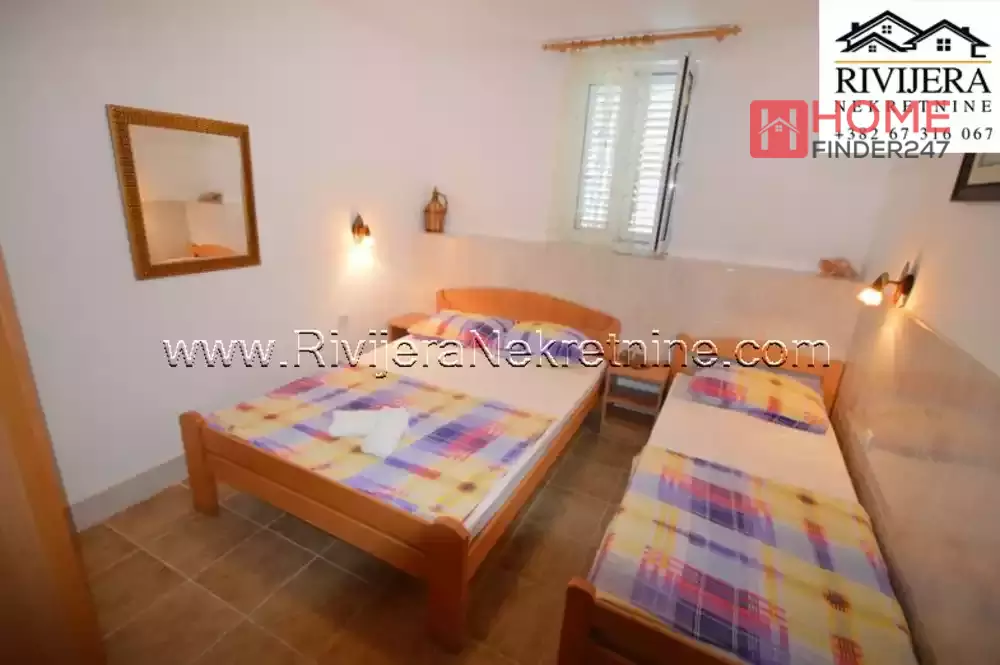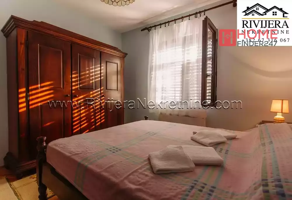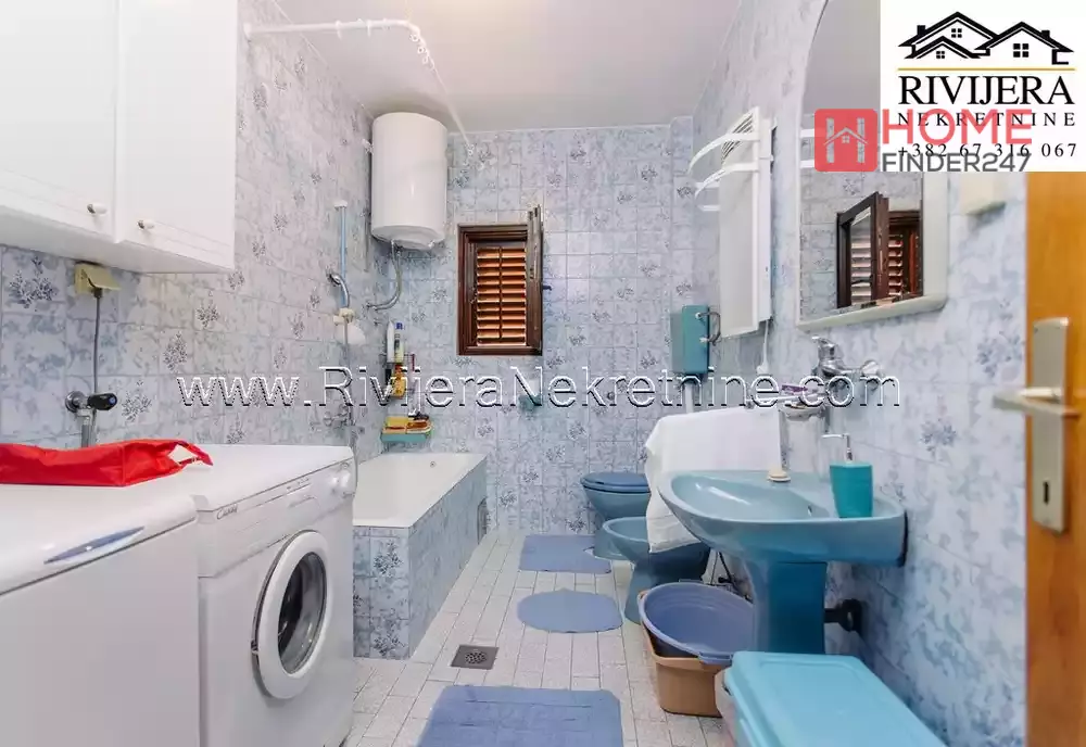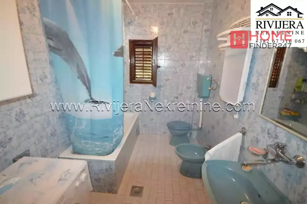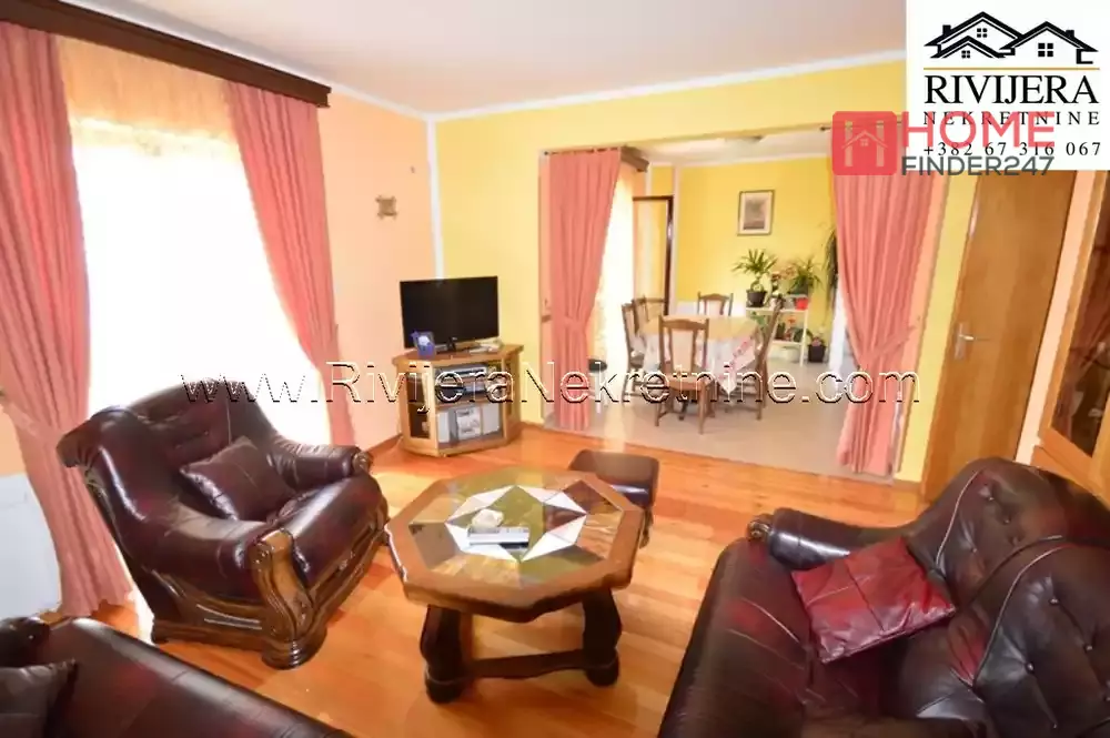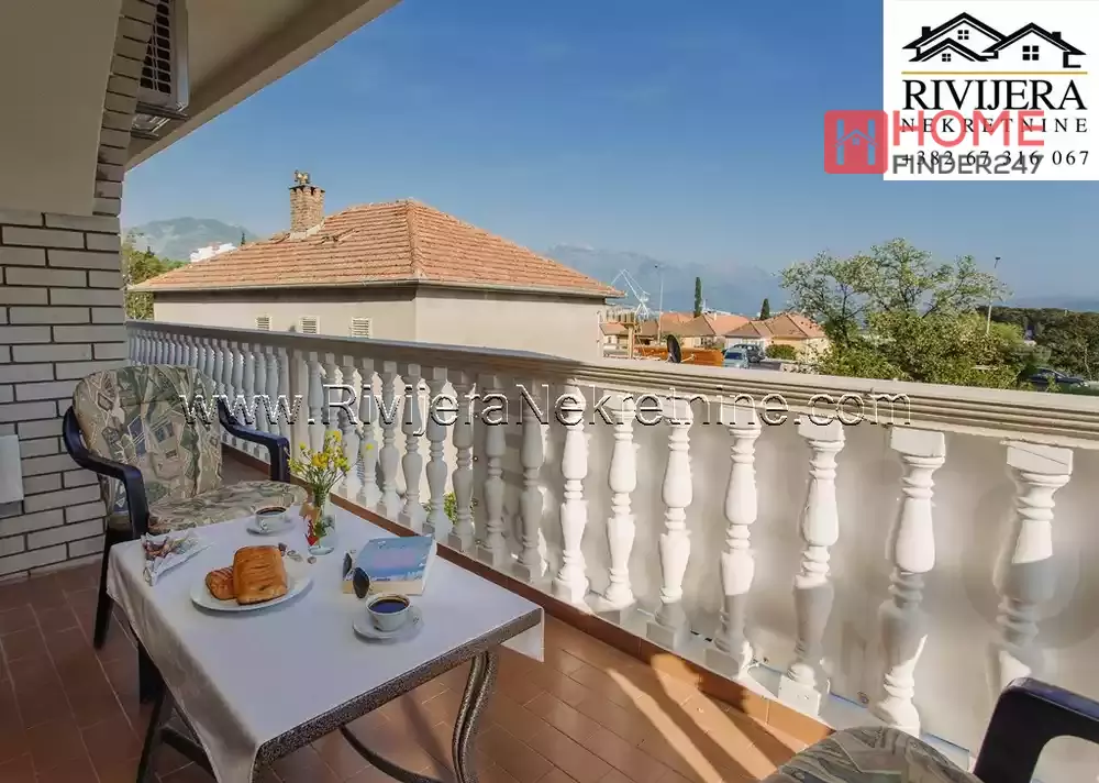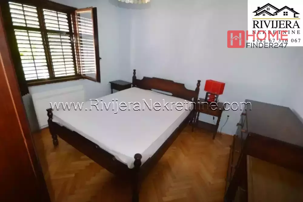 The house has a total area of 170 sqm and two floors. The ground floor has three apartments; the first has a nice and comfortable two-bedroom apartment. Parking space is provided in the courtyard, and garage space is 20 sqm. House is in good condition and is very attractive property. The price is on request. Agency RivijeraNekretnine.com offers the most attractive properties for sale and rent in Montenegro.
