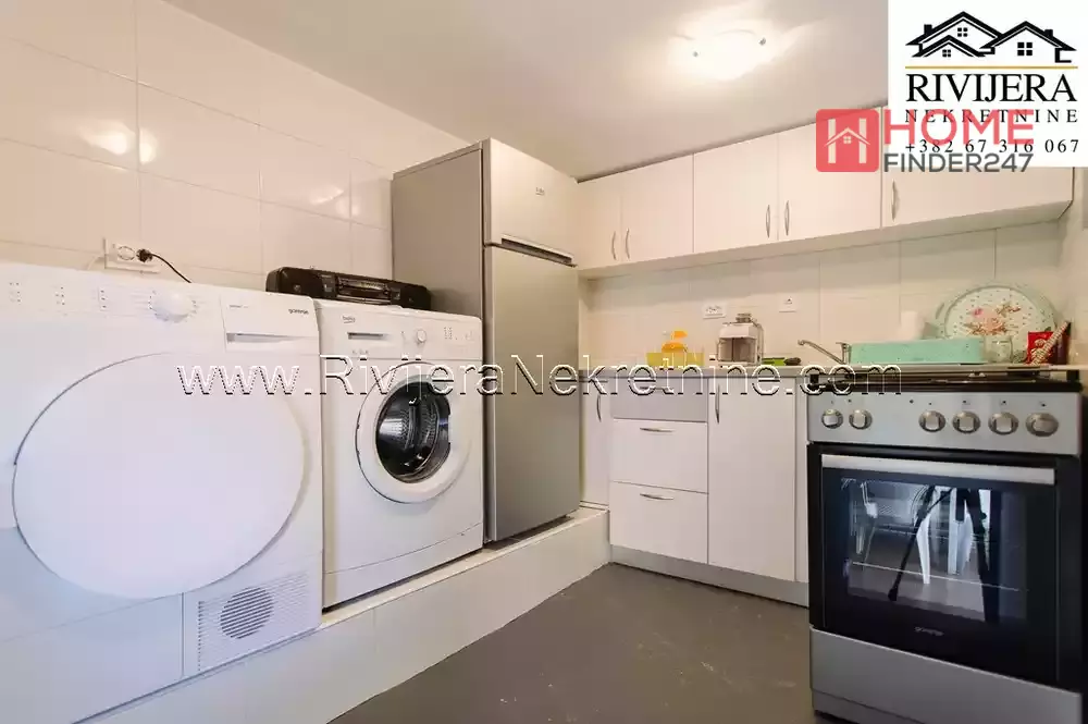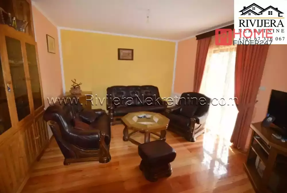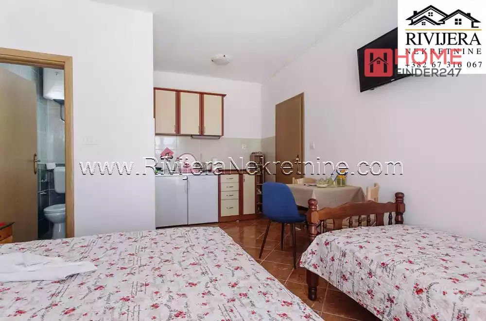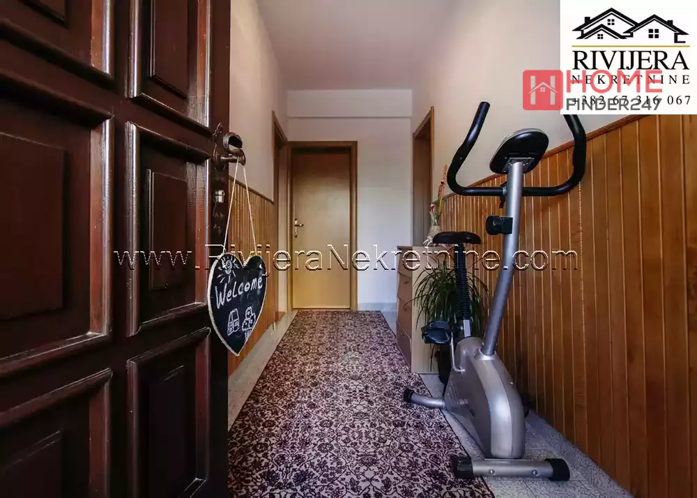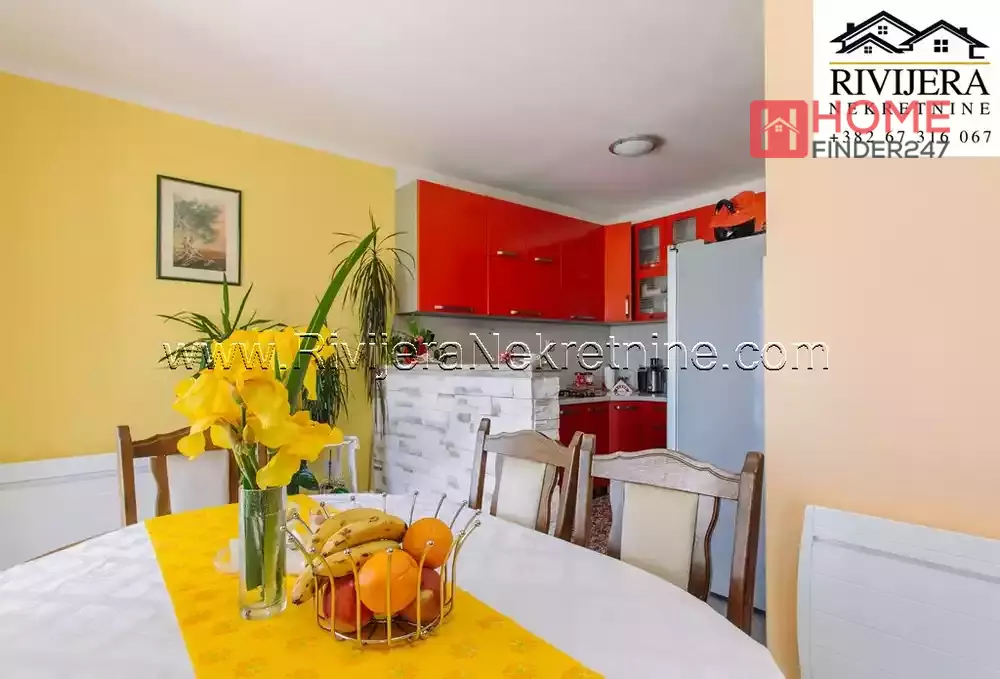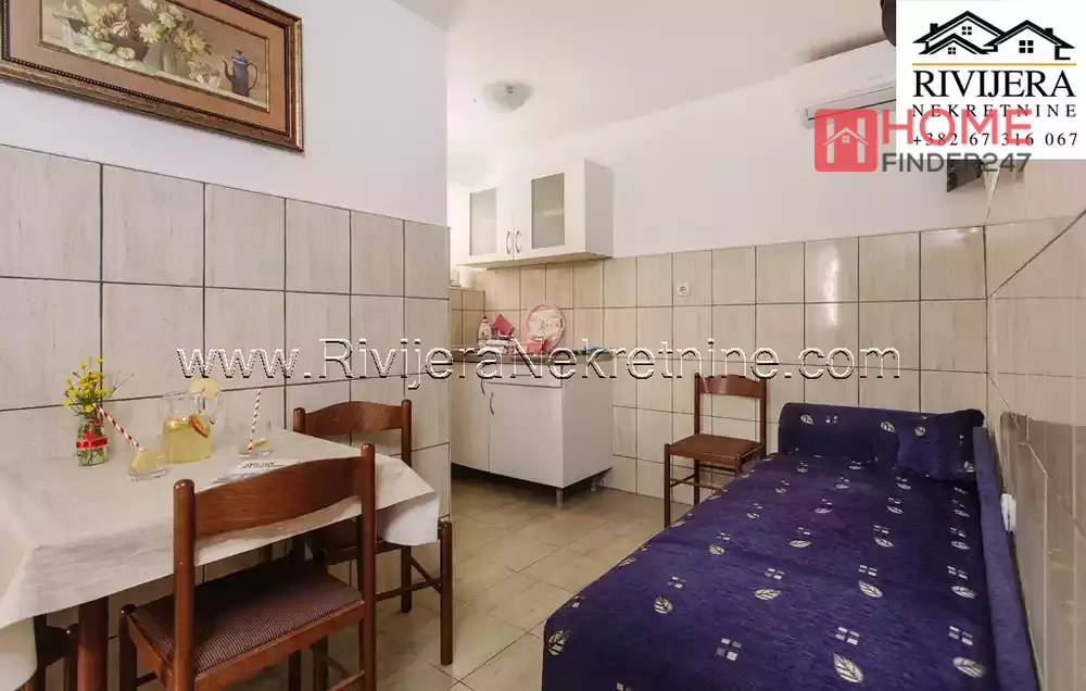The house has a total area of 170 sqm and two floors. The ground floor has three apartments; the first has a nice and comfortable two-bedroom apartment. Parking space is provided in the courtyard, and garage space is 20 sqm. House is in good condition and is very attractive property. The price is on request. Agency RivijeraNekretnine.com offers the most attractive properties for sale and rent in Montenegro.