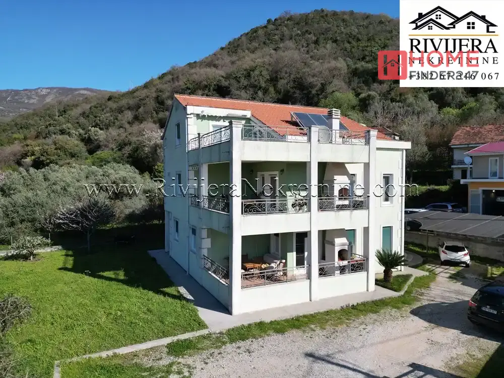 Family house with three comfortable apartments Bijela Herceg Novi. The total area of the house is 460 m2, consisting of a ground floor, two-bedroom furnished apartment 161 m2, first-floor three-bedroom furnished apartment 155 m2, second-floor three-bedroom apartment 144 m2. House very well built, (new construction) central heating, air conditioning, tavern 40 m2. Area of the yard around the house 1,158 m2, parking for several vehicles. Possibility of building a swimming pool in the yard in front of the house. Distance from the sea ten minutes walk, Herceg Novi 16 km. Distance from Tivat airport is 12 km. Price: €900,000
