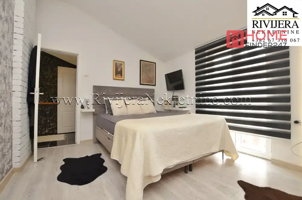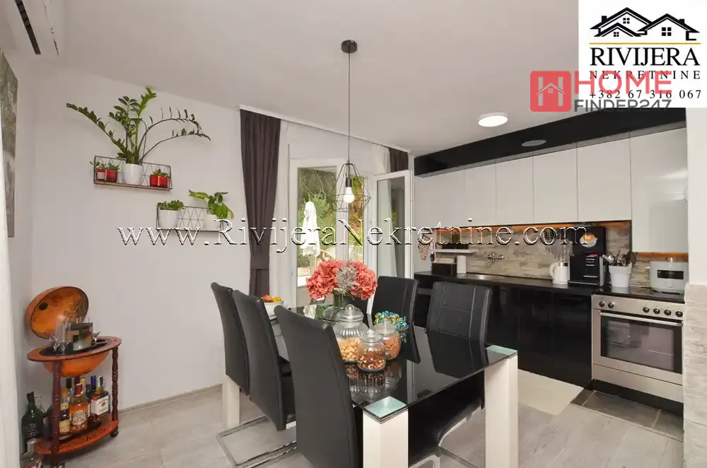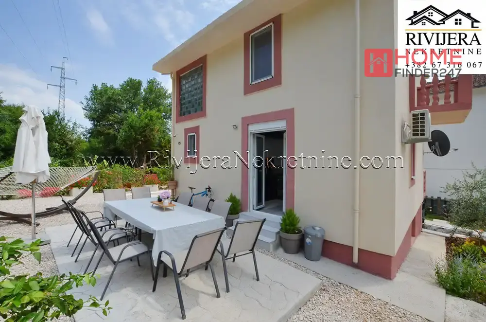 Charming family house Herceg Novi Bijela settlement. The house has an area of 104 m², consisting of a two-storey apartment (total area 70 m² + terrace), three bedrooms, a bathroom and toilet, a living room, a kitchen with dining area, and a basement of 34 m². Cultivated and fenced yard area around the house 317 m2, parking space provided. Distance from the sea, beach seven/eight minutes easy walk. House furnished in good condition. Distance from Herceg Novi 15 km. Price: 365,000 euros