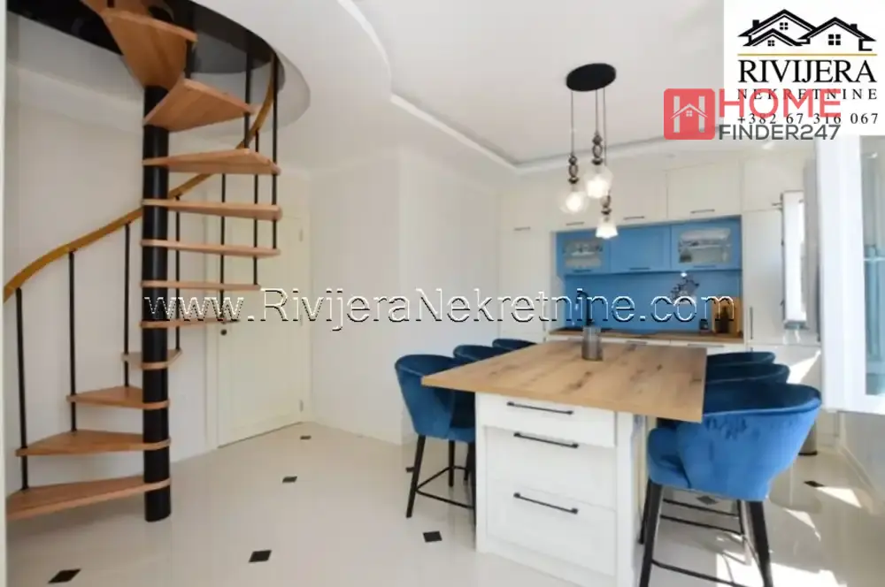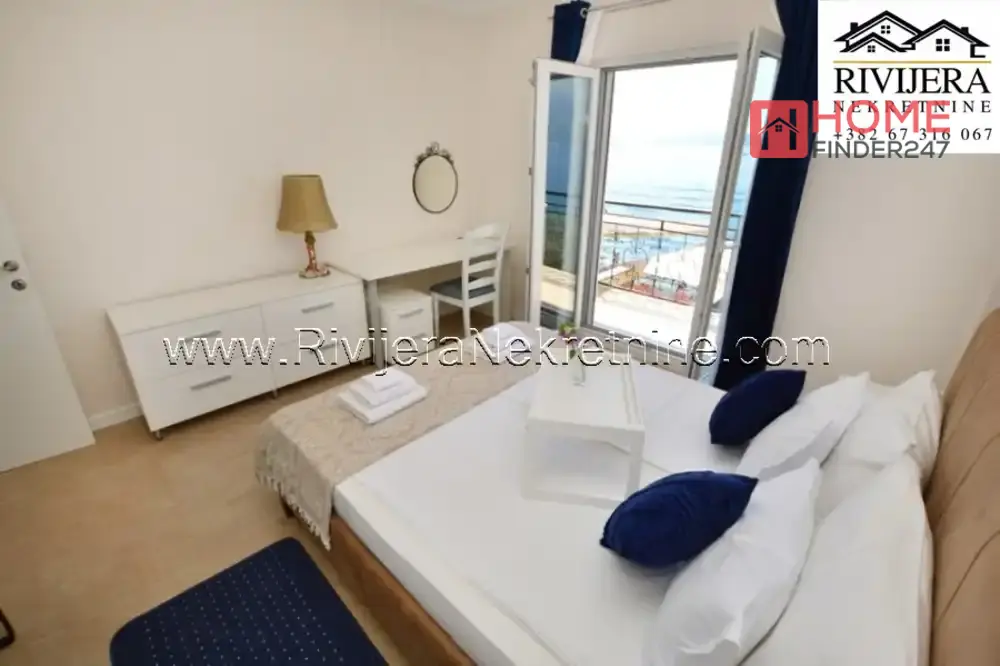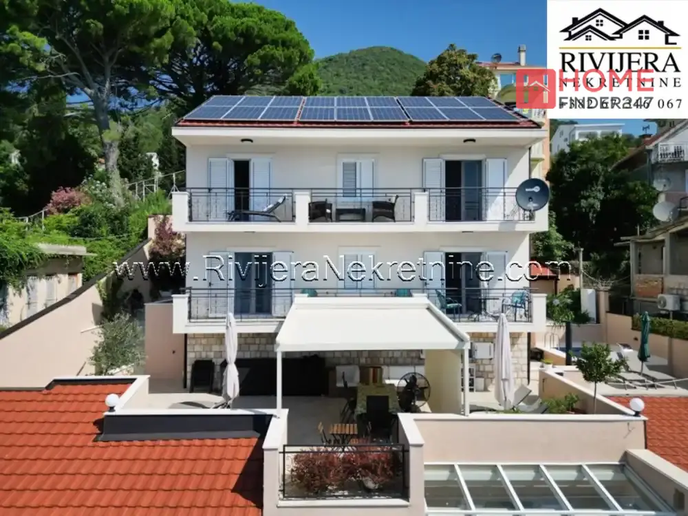 Luxury house, first row to the Bijela sea. House area 400m2. Ground floor: garage 35m2 for two cars, one bedroom apartment 41m2 + courtyard terrace + storage room 10m2. Ground floor: Summer kitchen with bathroom 24 m2 and a small room, terrace facing the sea 70 m2 + swimming pool 7 m2. First floor: three-room apartment, south-facing, furnished 98m2. Second floor: duplex apartment of 130m2 with three bedrooms and two bathrooms. The house is in excellent condition and fully equipped.