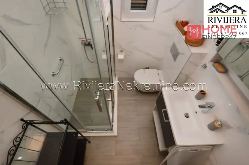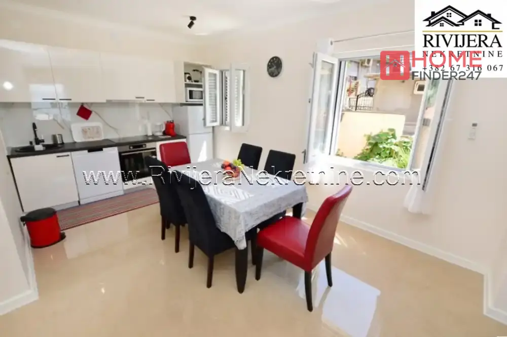 The area of the yard around the building is 150m2. Attractive location on the seashore, with the possibility of mooring a boat/speedboat in front of the building. The distance from Herceg Novi is 15 km, and Tivat Airport is 20 km.