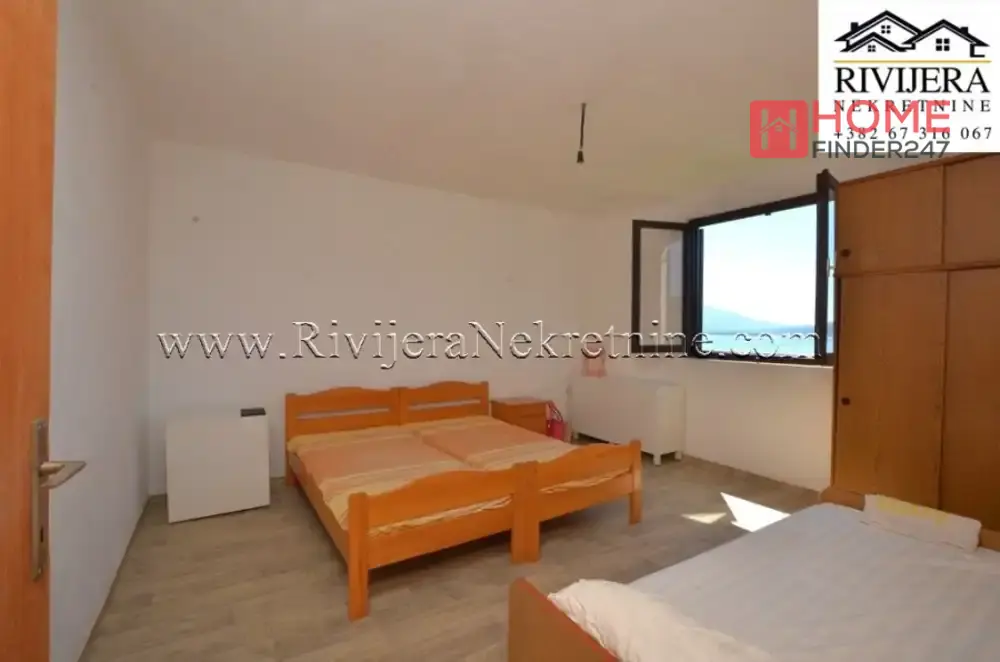 Two-story house with a beautiful view of the sea, Bijela, Boka Kotorska. The total area of the house is 153 m2, it consists of two three-room apartments of 61 m2 (ground floor), 83 m2 (first floor), basement of 10 m2. The area of the yard around the house is 280 m2. Distance from the sea is about 300 meters, Herceg Novi is 12 km. Price: €242,000